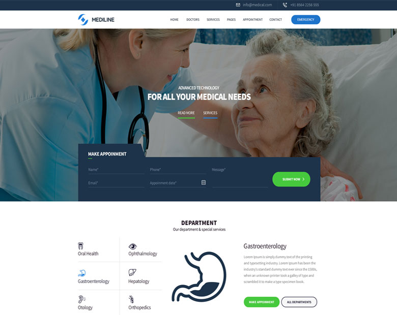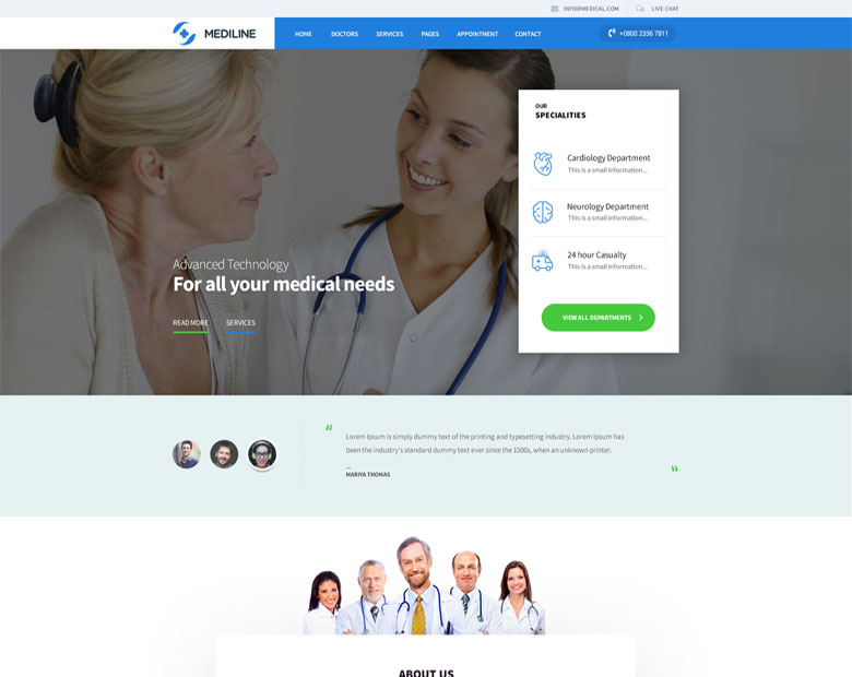 V.1.1.0 Mediline WordPress Theme is fully responsive,clean design,medical related design so used for any type of medical,clinic,dentist,health,hospitals or any medical related business.