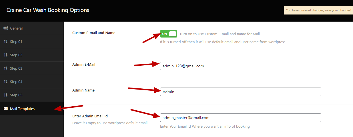 If you want to use Custom Email Address and Name Rather than WordPress Registered Email and Name, Turn the Switch on.