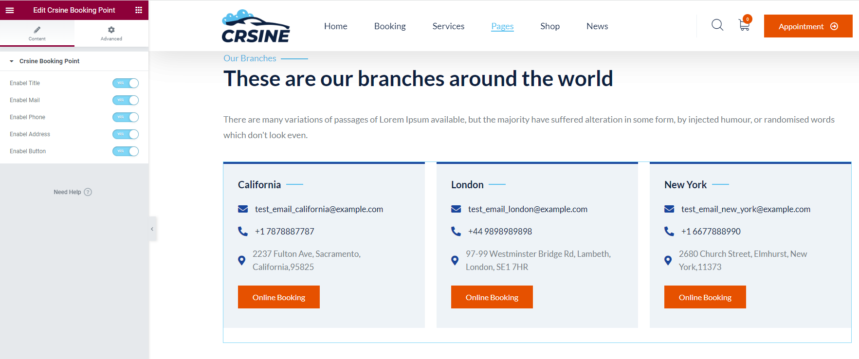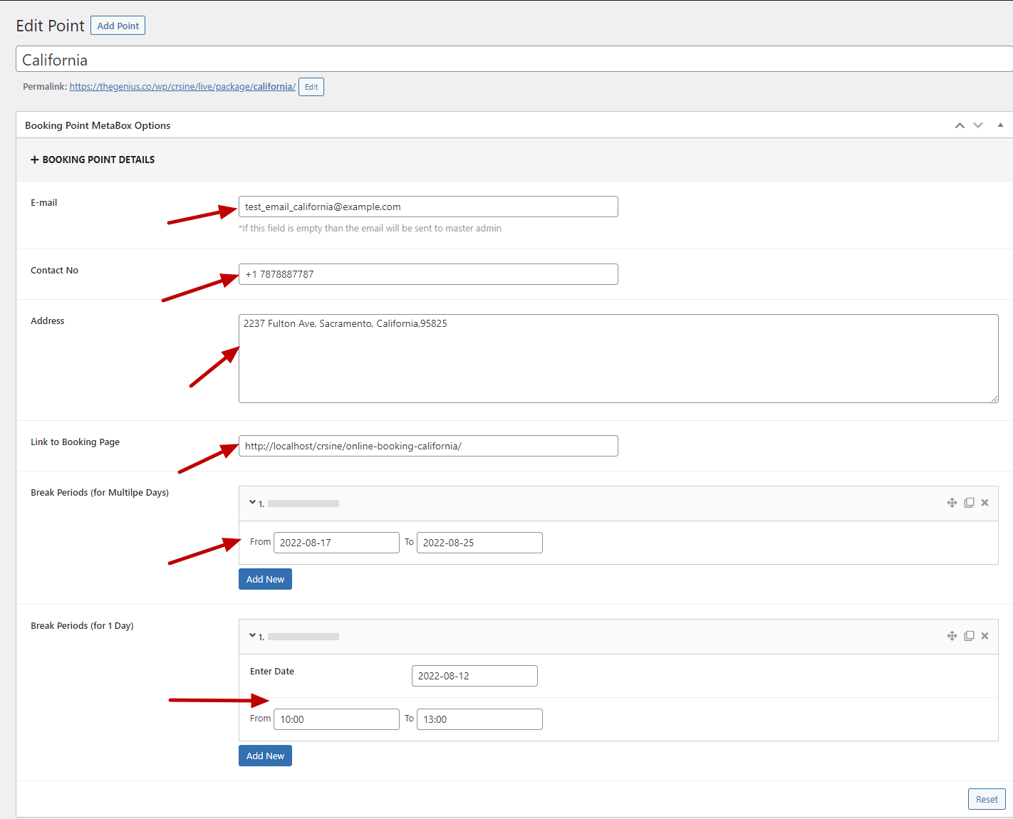 • Create multiple pages for multiple Points. Than copy the URL of Online Booking page of your point you created and paste it in "Link to Booking Page"