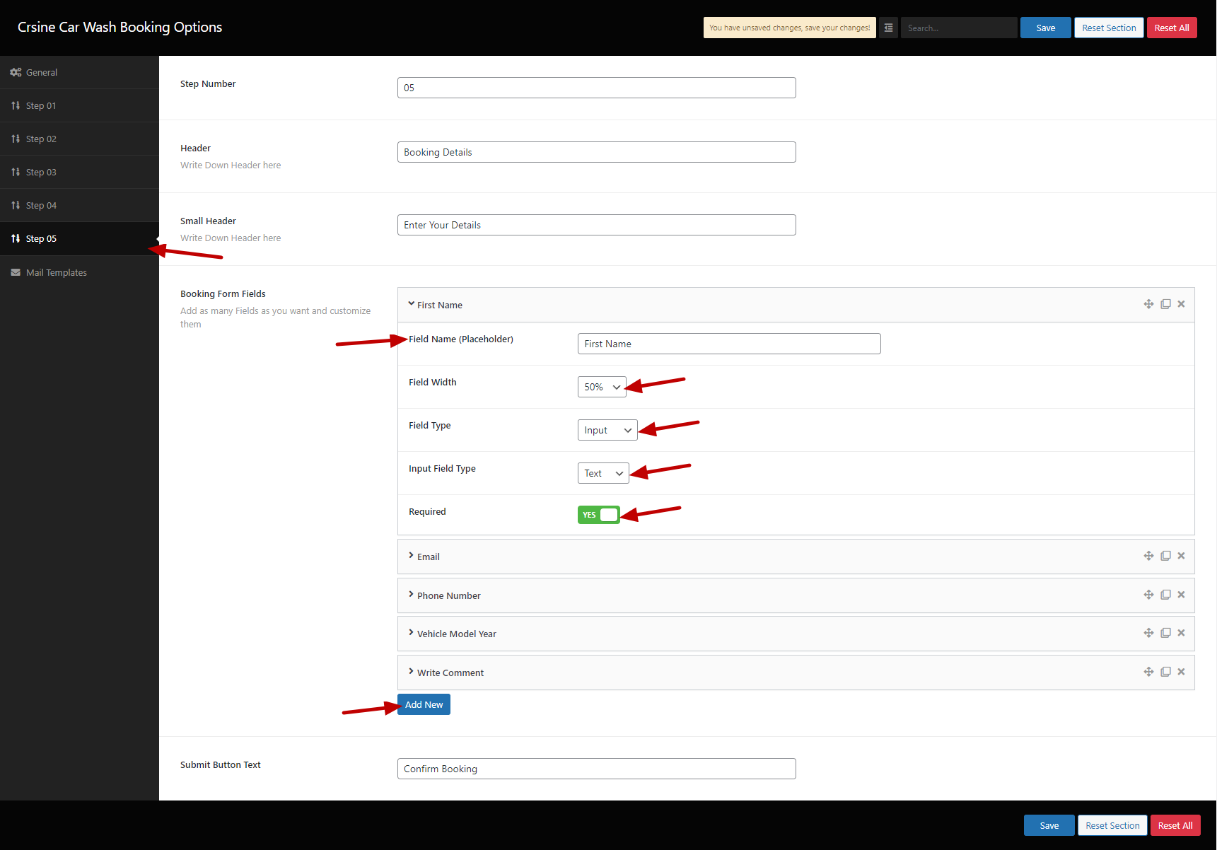 Enter Your Field name, Field width, Field type. If the field has to be required to fill up. turn the switch on.