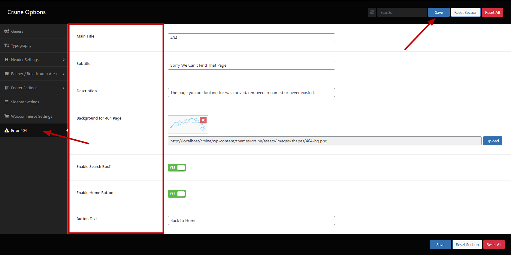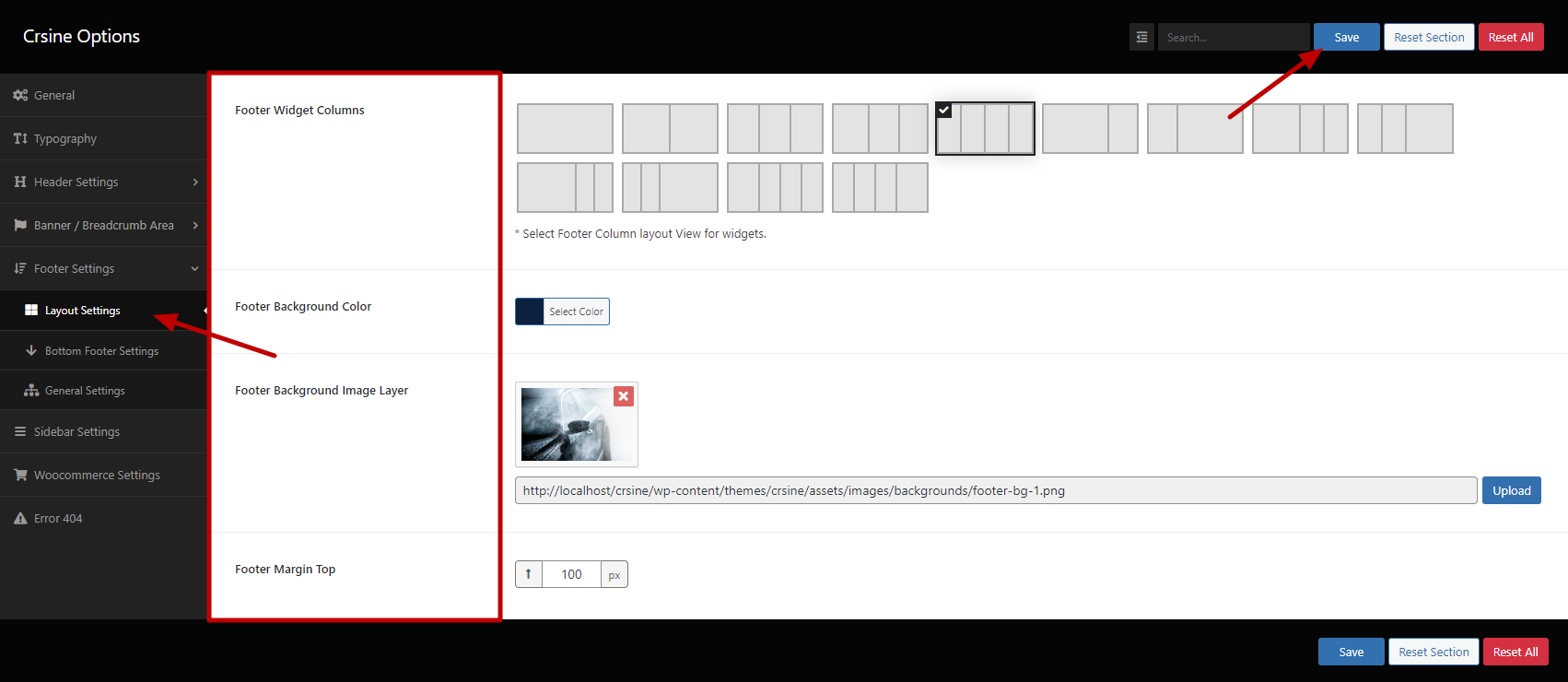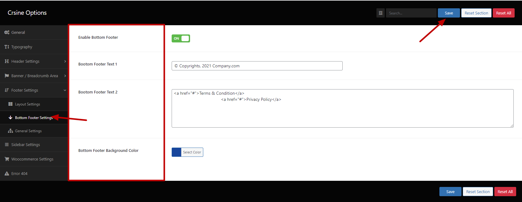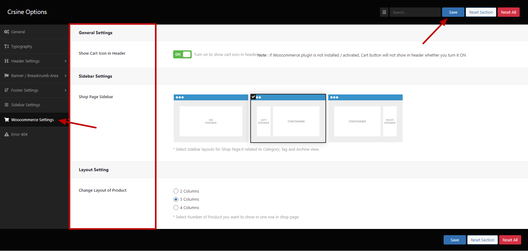 wp-admin >> Crsine Options >> Woocommerce Settings