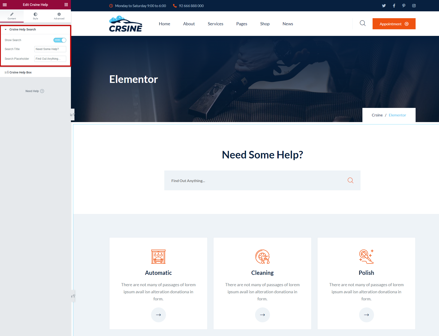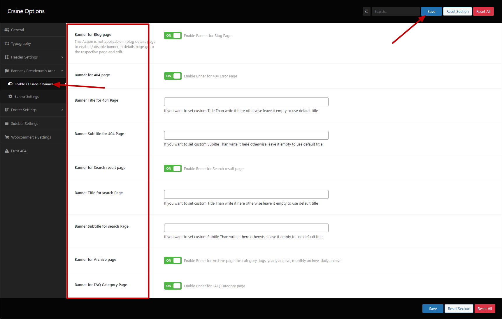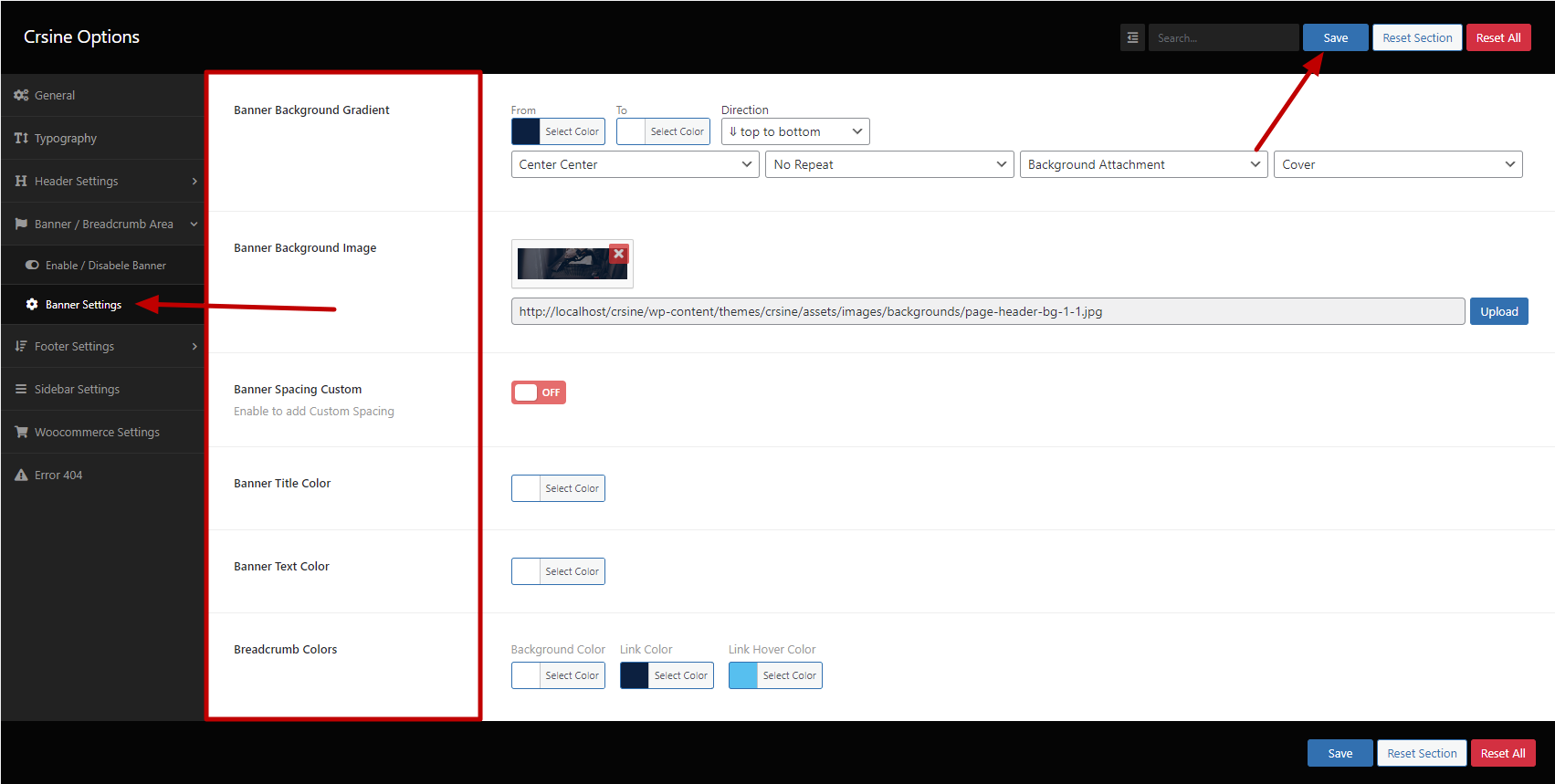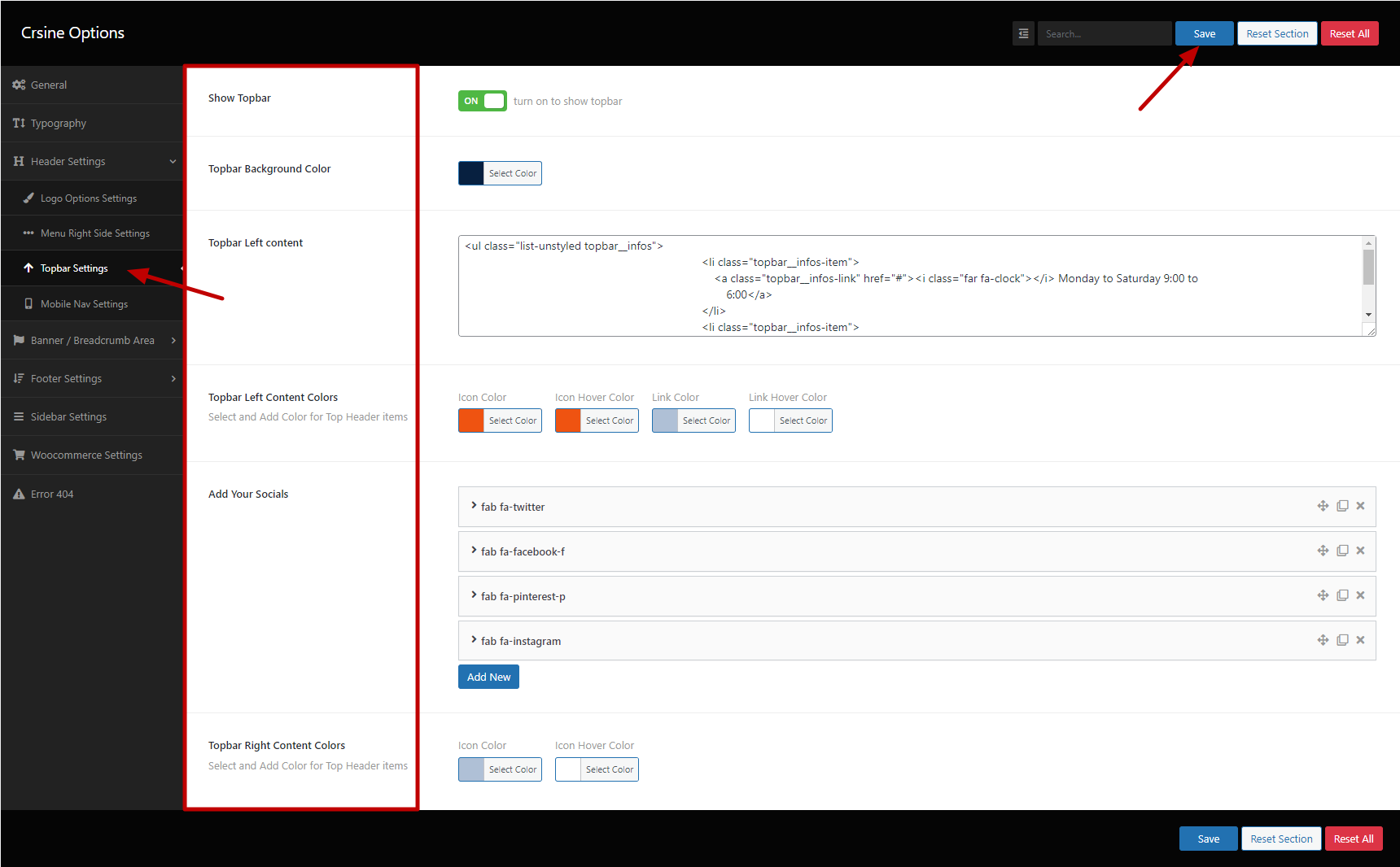wp-admin >> Crsine Options >> Header Settings >> Topbar Settings