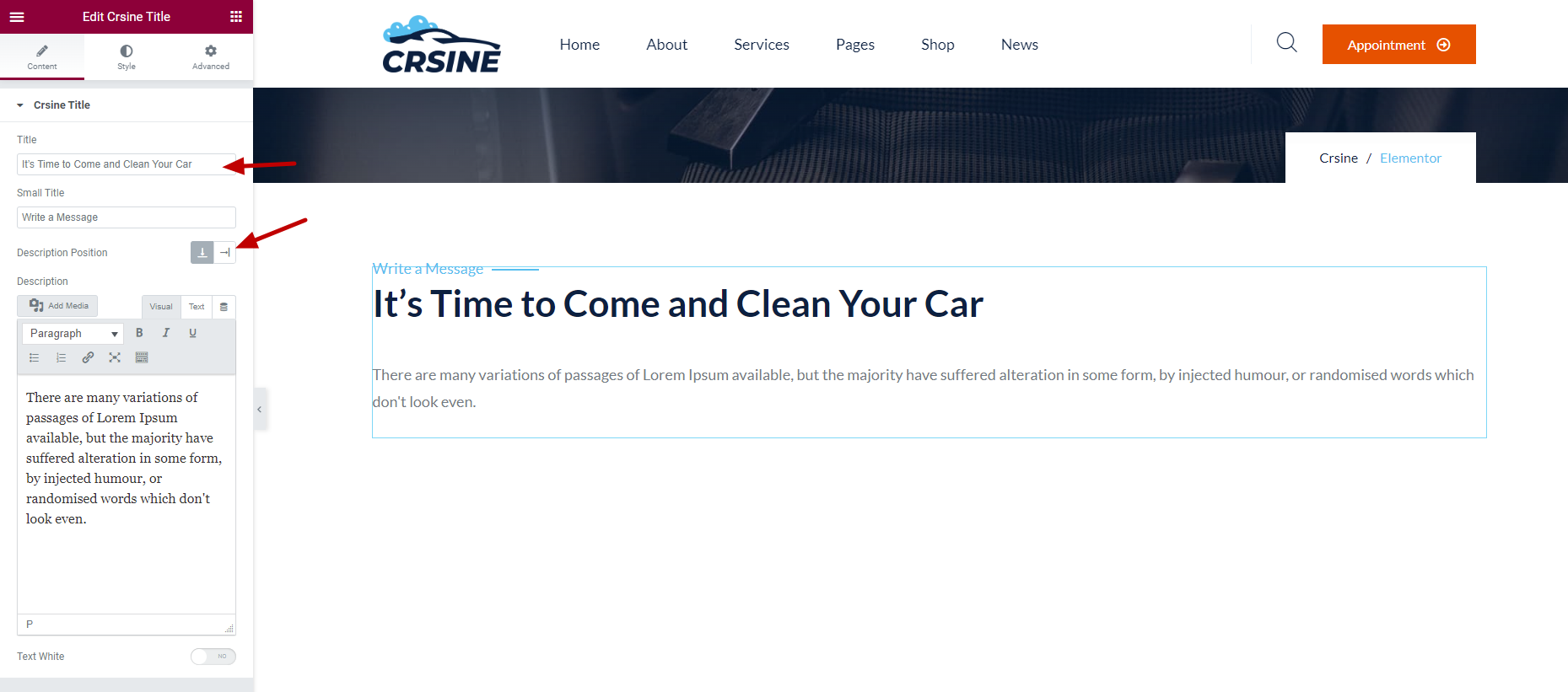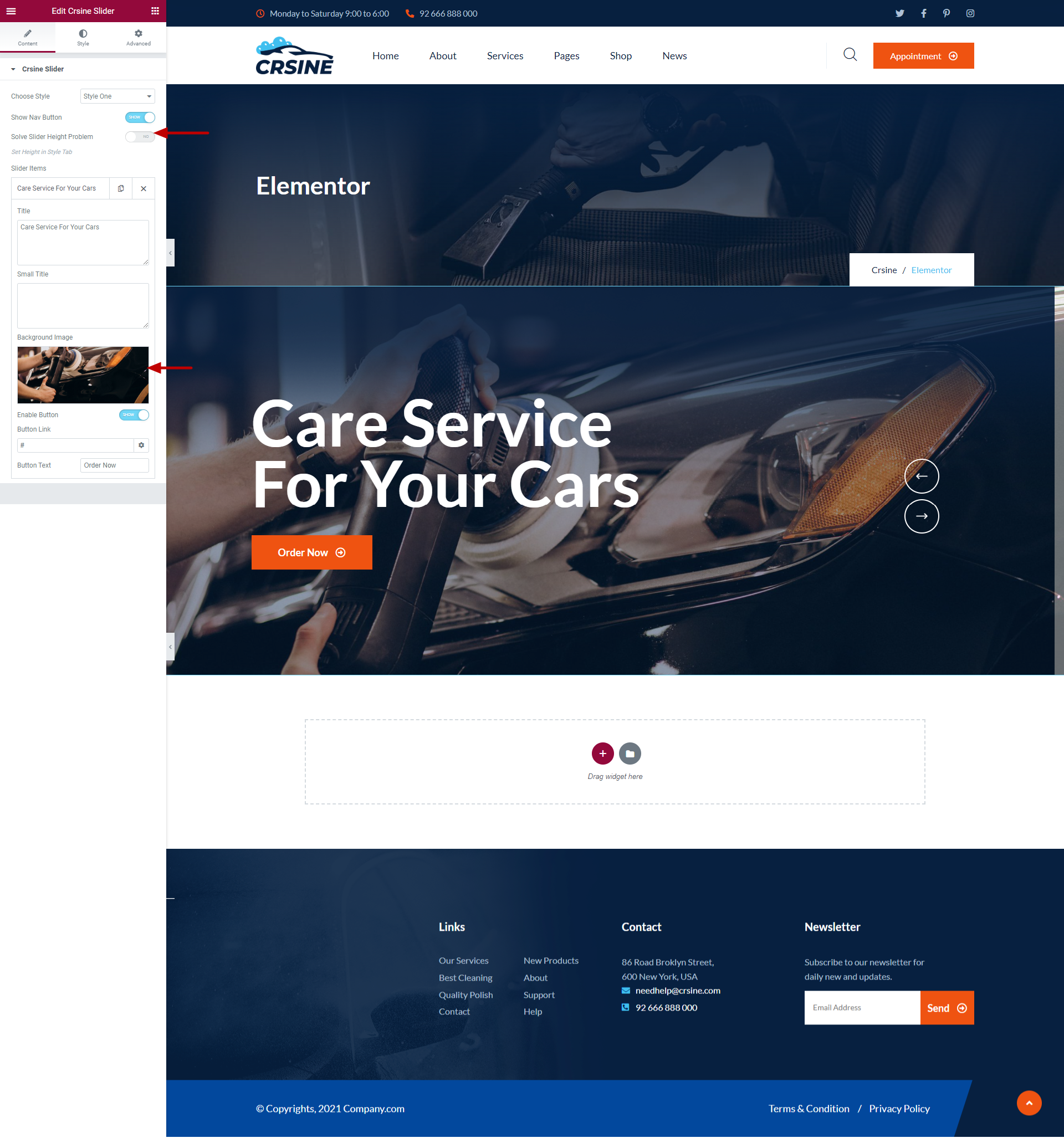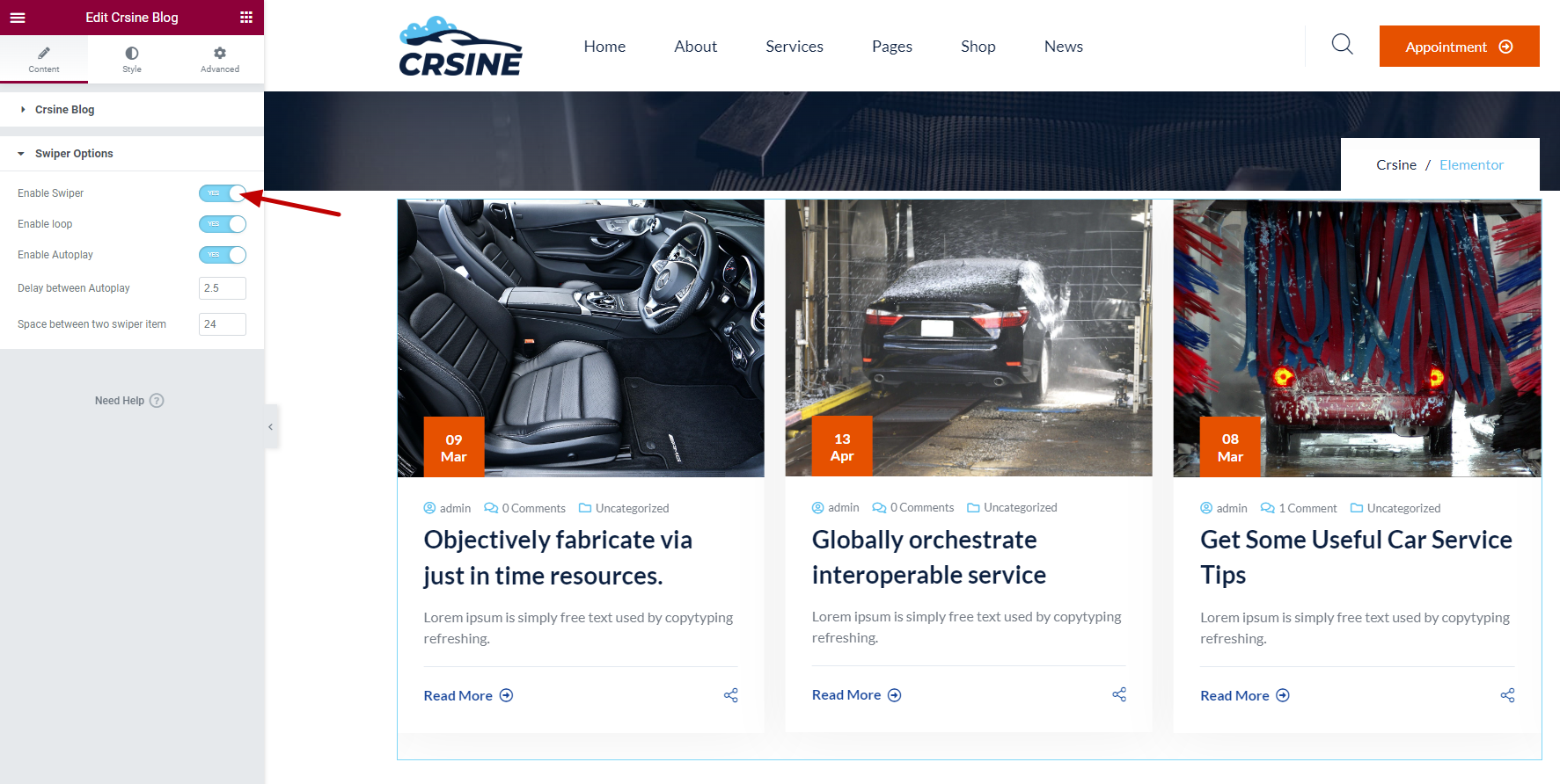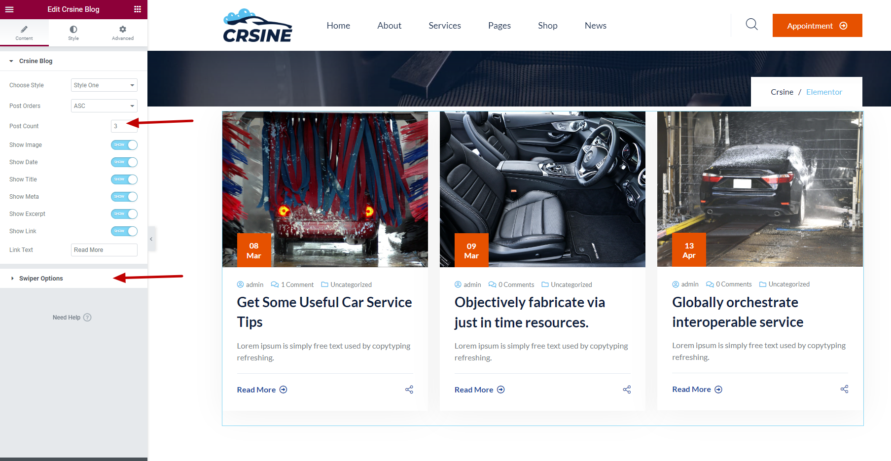 wp-admin >> Crsine Options >> Header Settings >> Topbar Settings