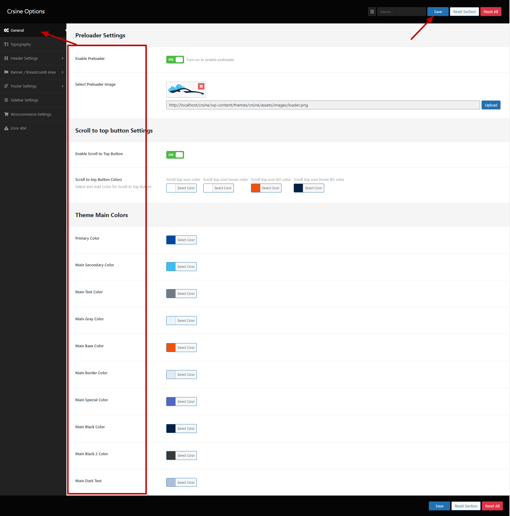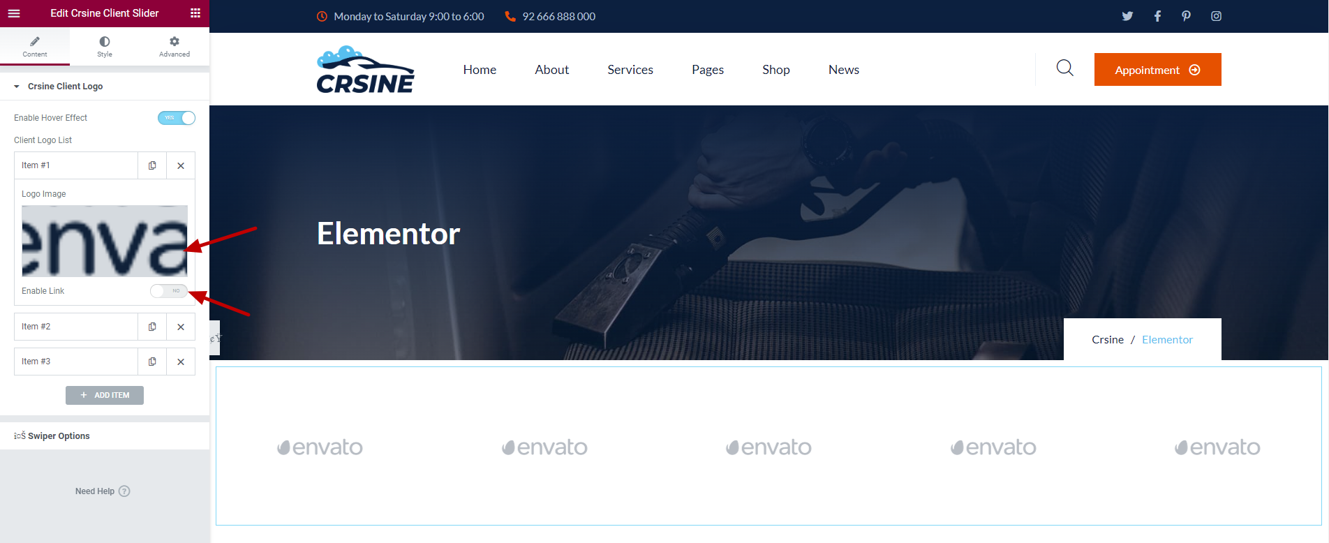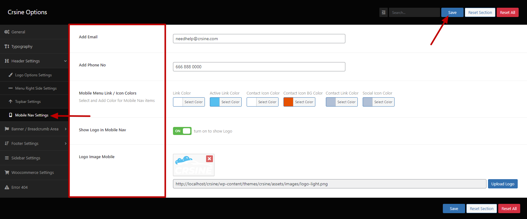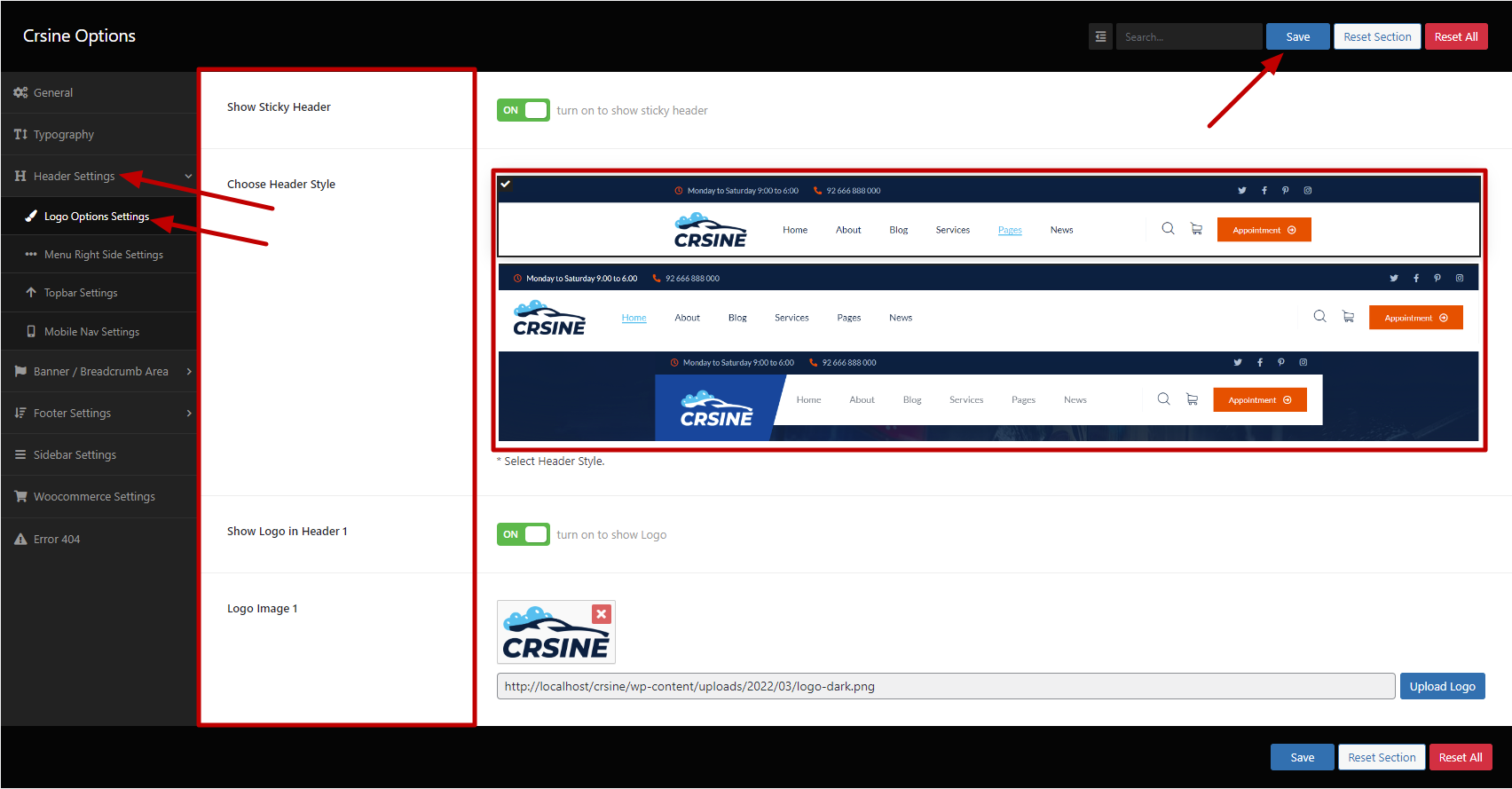 wp-admin >> Crsine Options >> Header Settings >> Logo Option Settings