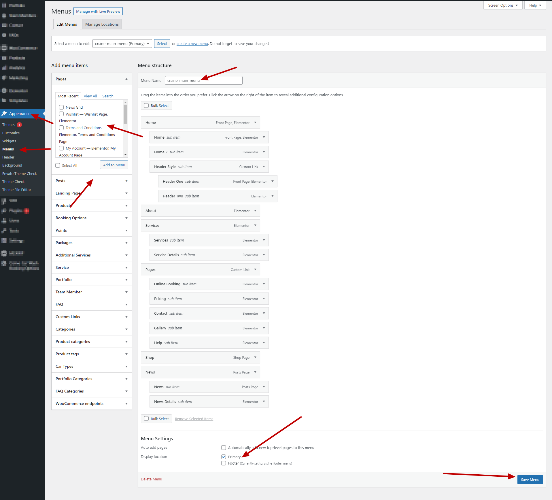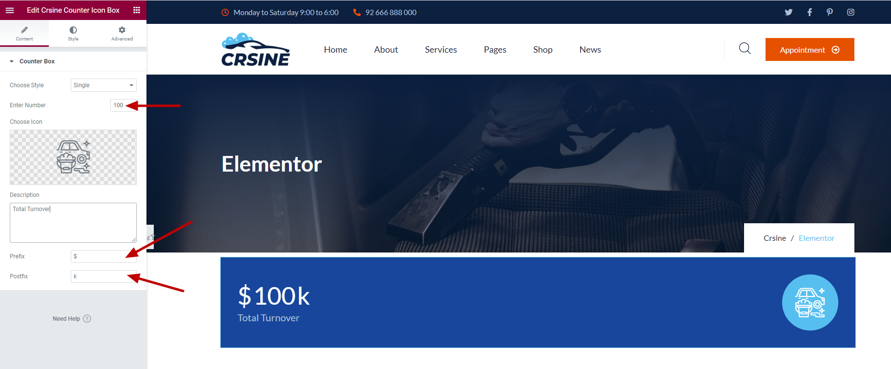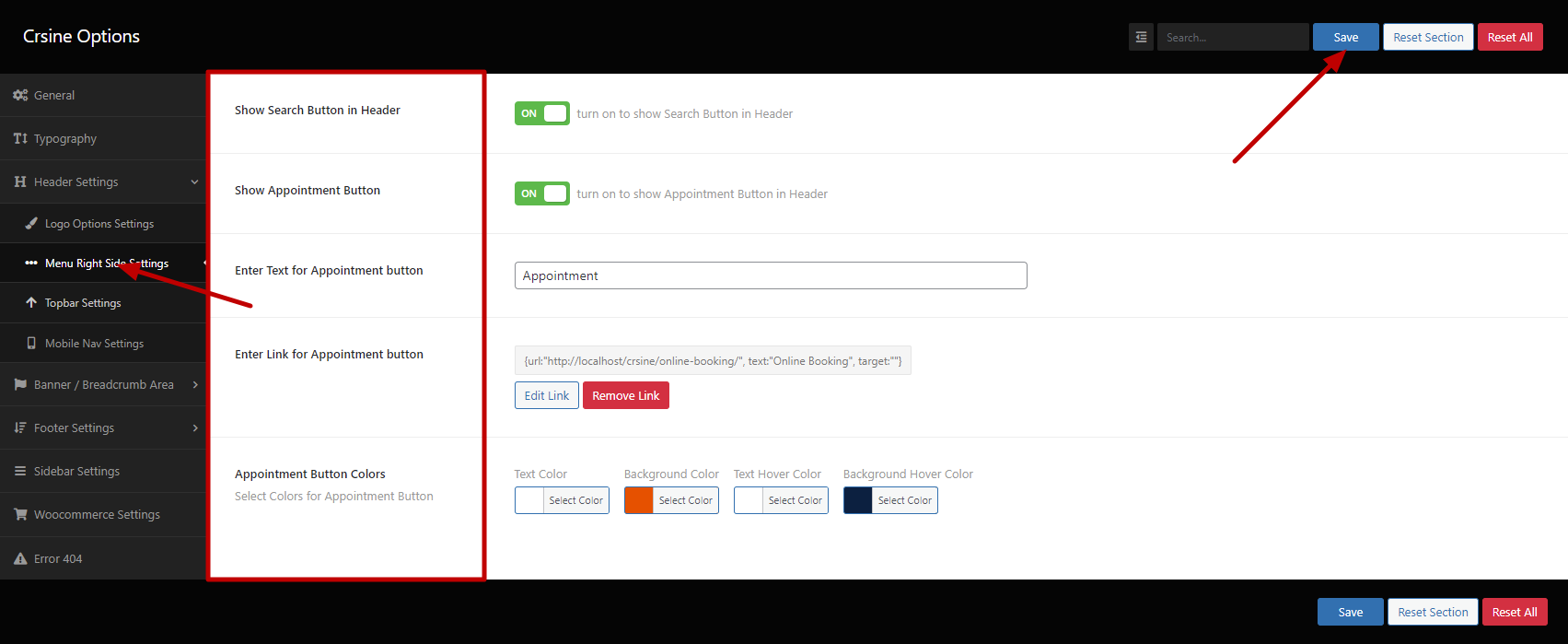 wp-admin >> Crsine Options >> Header Settings >> Menu Right Side Settings