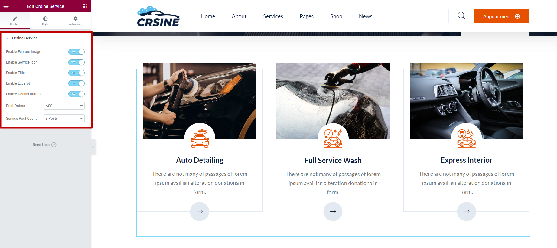 Note: This widget will only be seen if Crsine Booking Plugin is Activated.