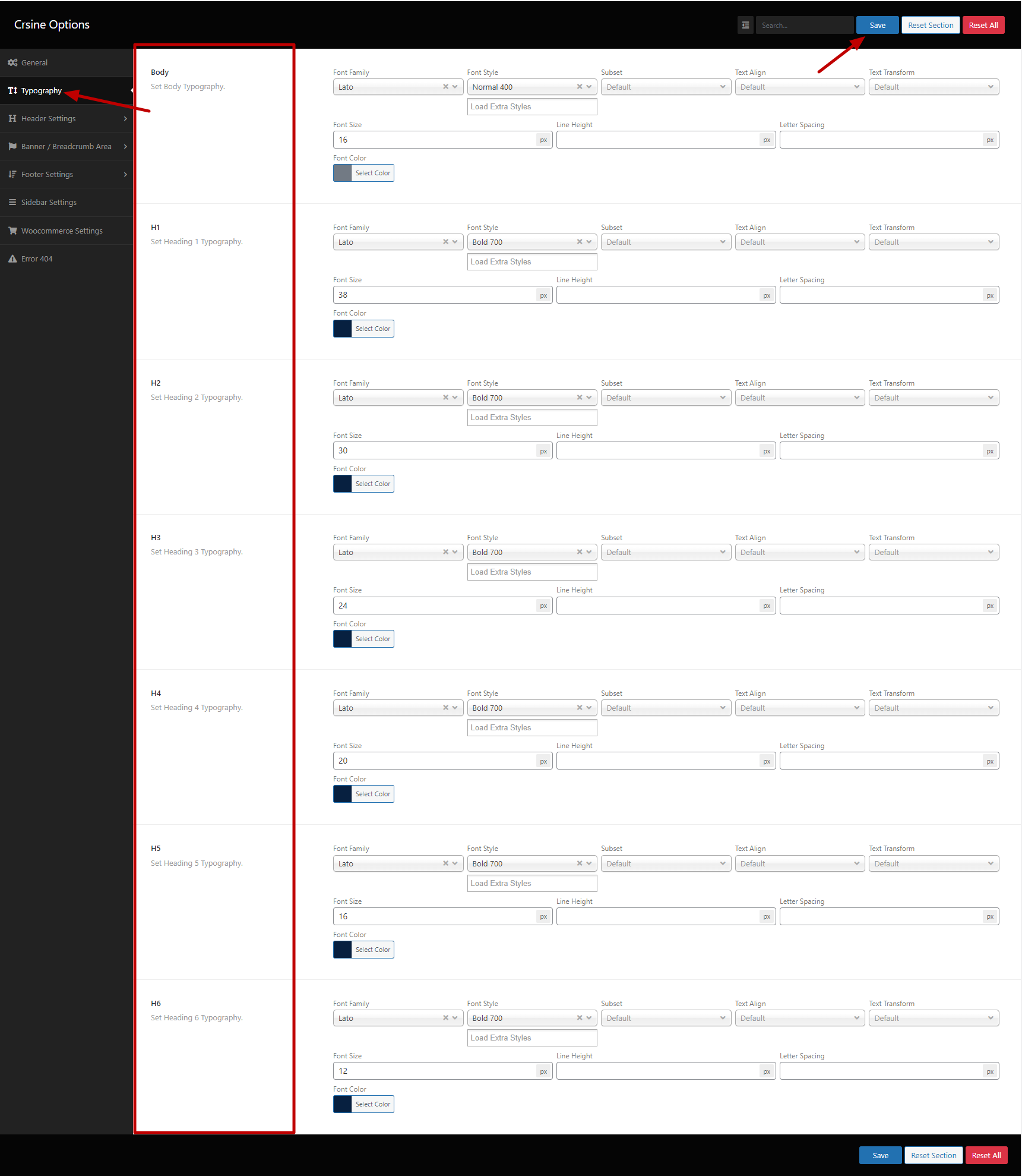 Note: If you want to use default settings for Styling, Don,t change anything in Header Setting.