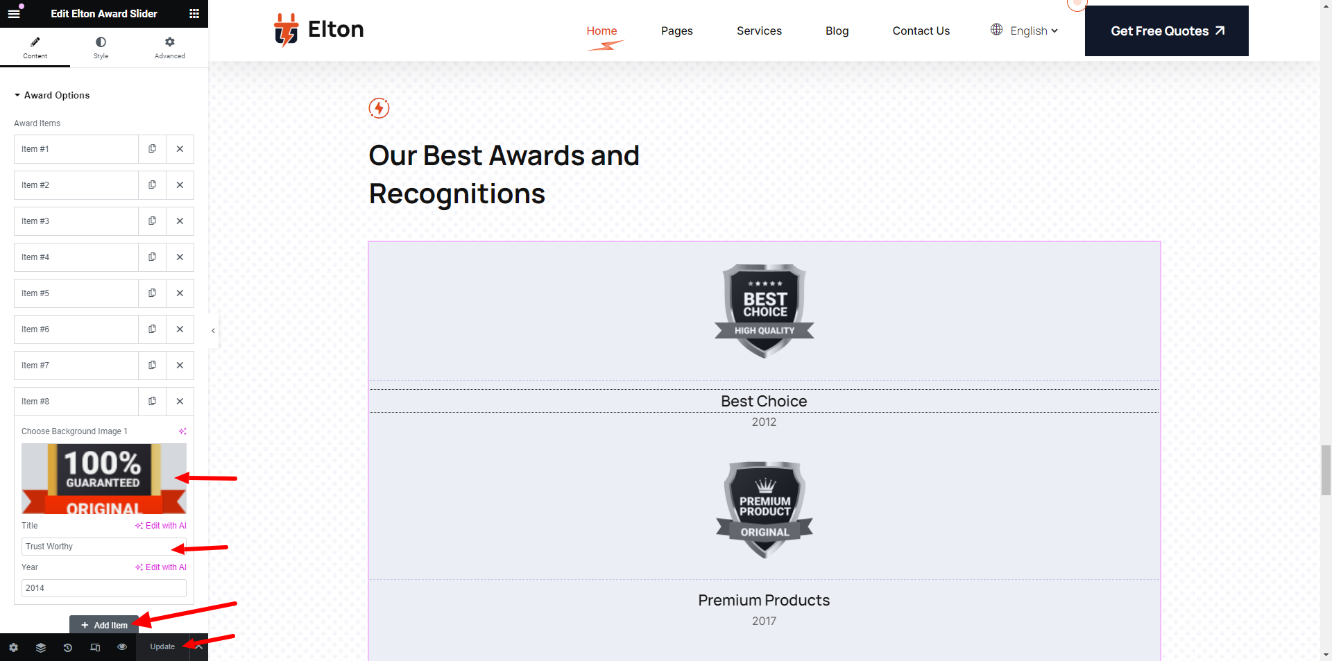 Elton Award Slider