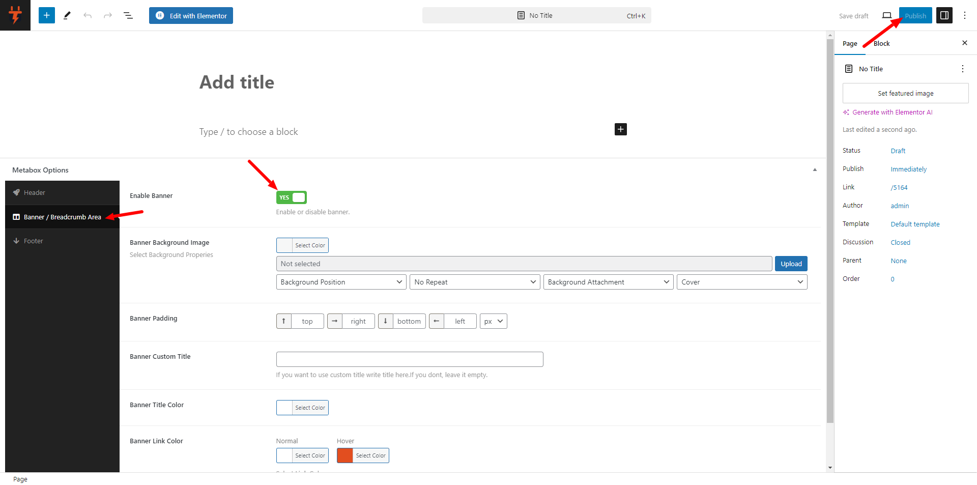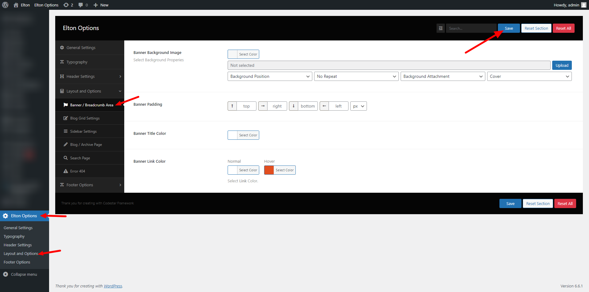 wp-admin >> elton Options >> Layout and Options >> Banner / Breadcrumb Area