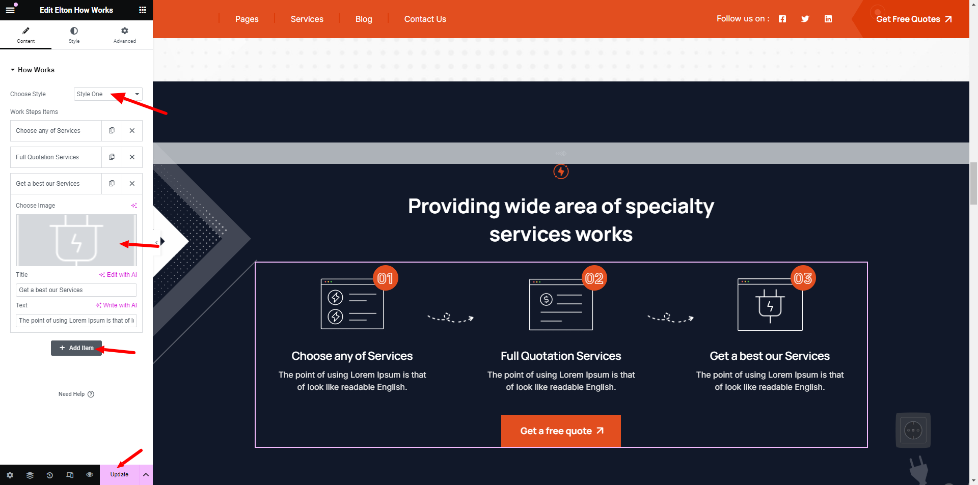 Add icon and text to the How Work Steps.