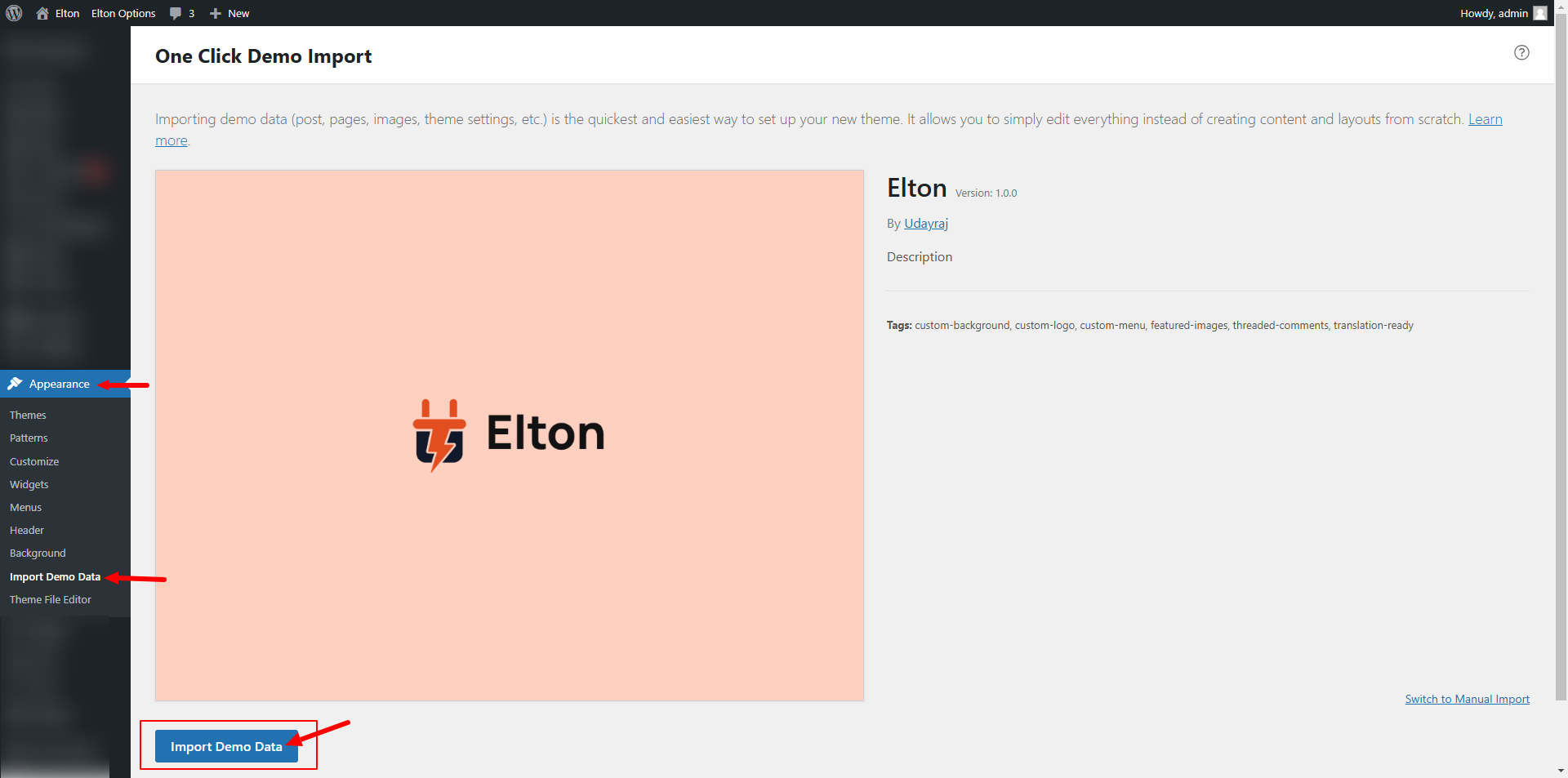 Theme Demo Content Import