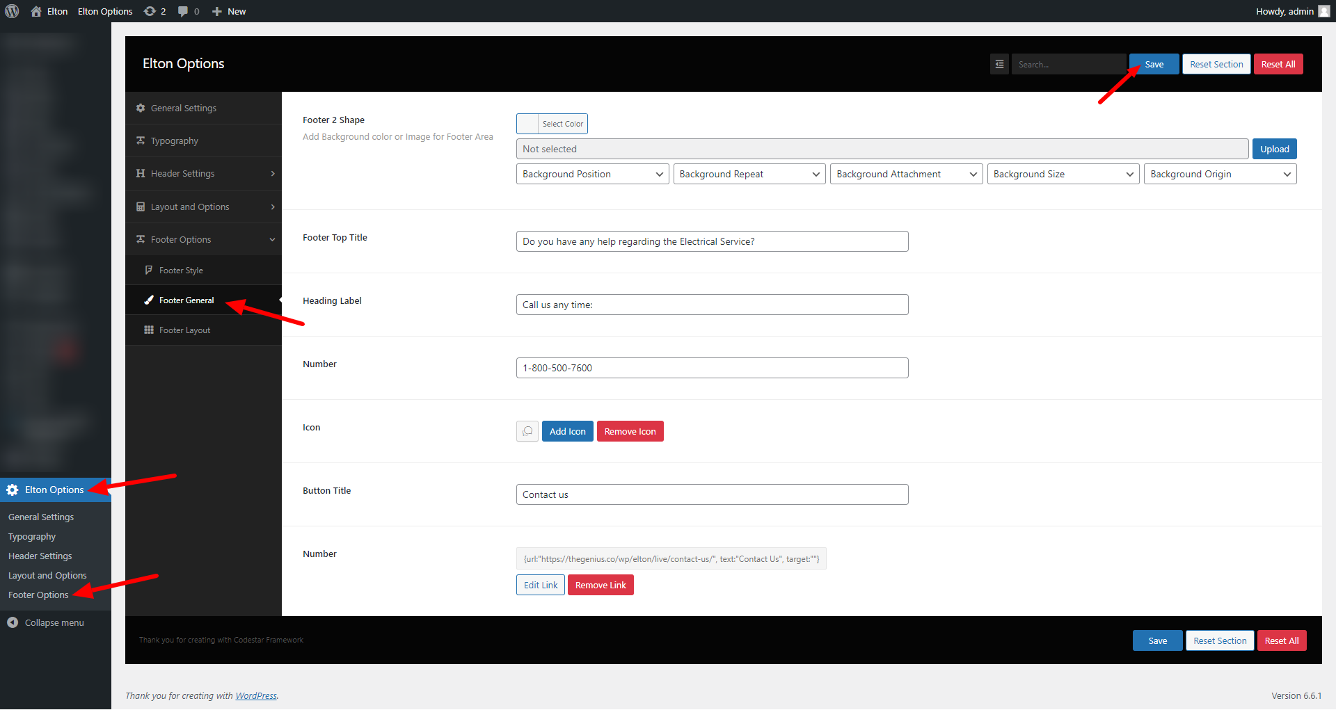 wp-admin >> elton Options >> Footer Options >> Footer General