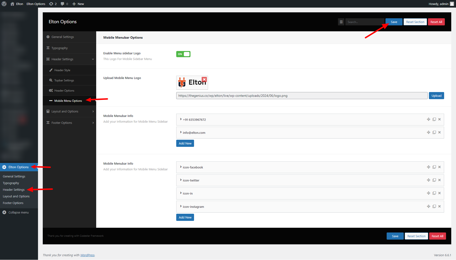 wp-admin >> elton Options >> Header Settings >> Mobile Menu Options