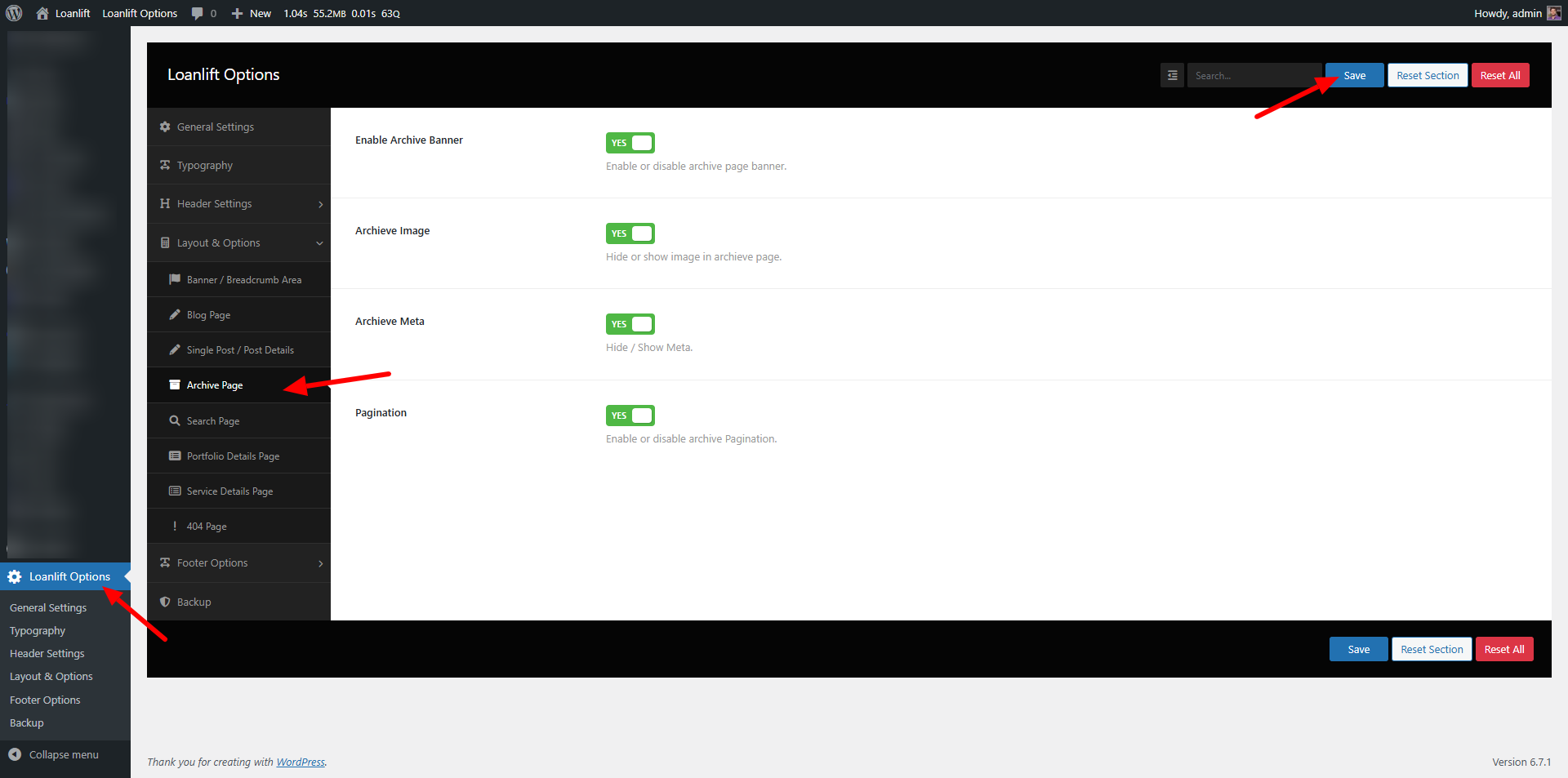 wp-admin >> loanlift Options >> Layout and Options >> Archive Page