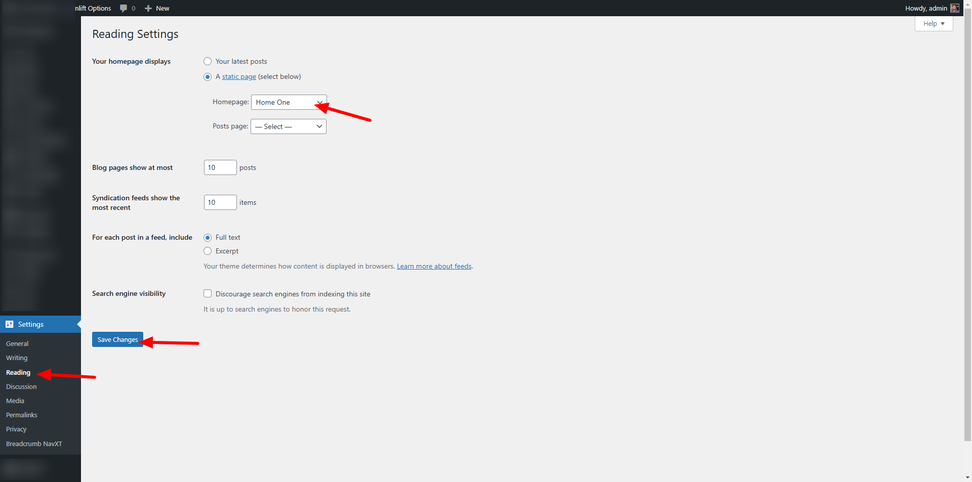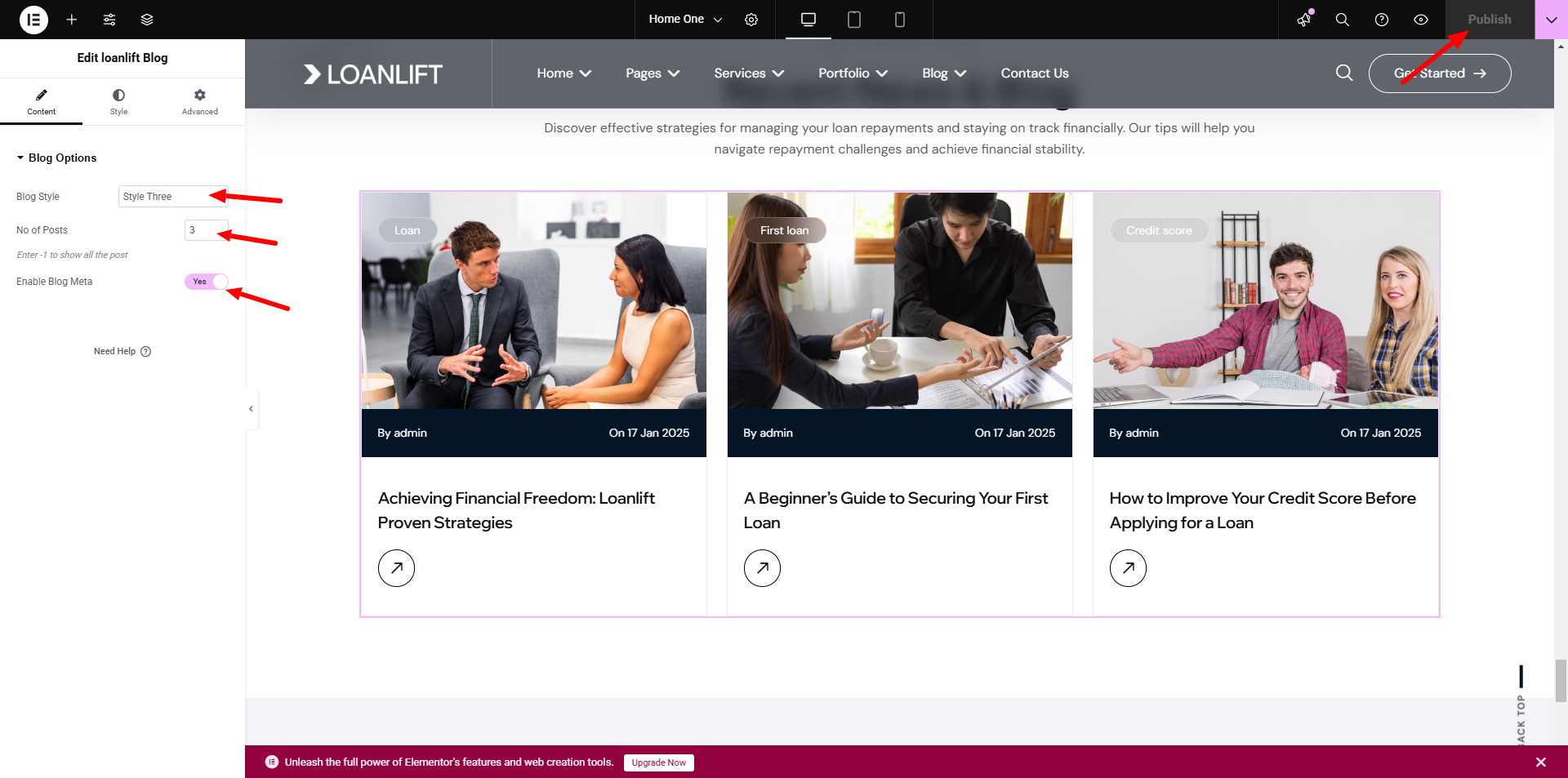 wp-admin >> loanlift Options >> Layout and Options >> Blog page