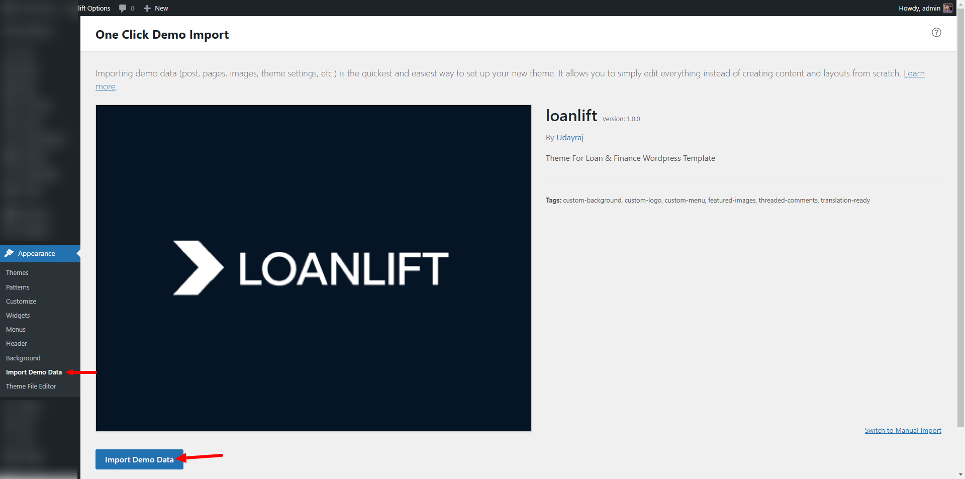 Go to Admin panel > Appearance > Import Demo Data > Click On 'Import Demo Data' Button