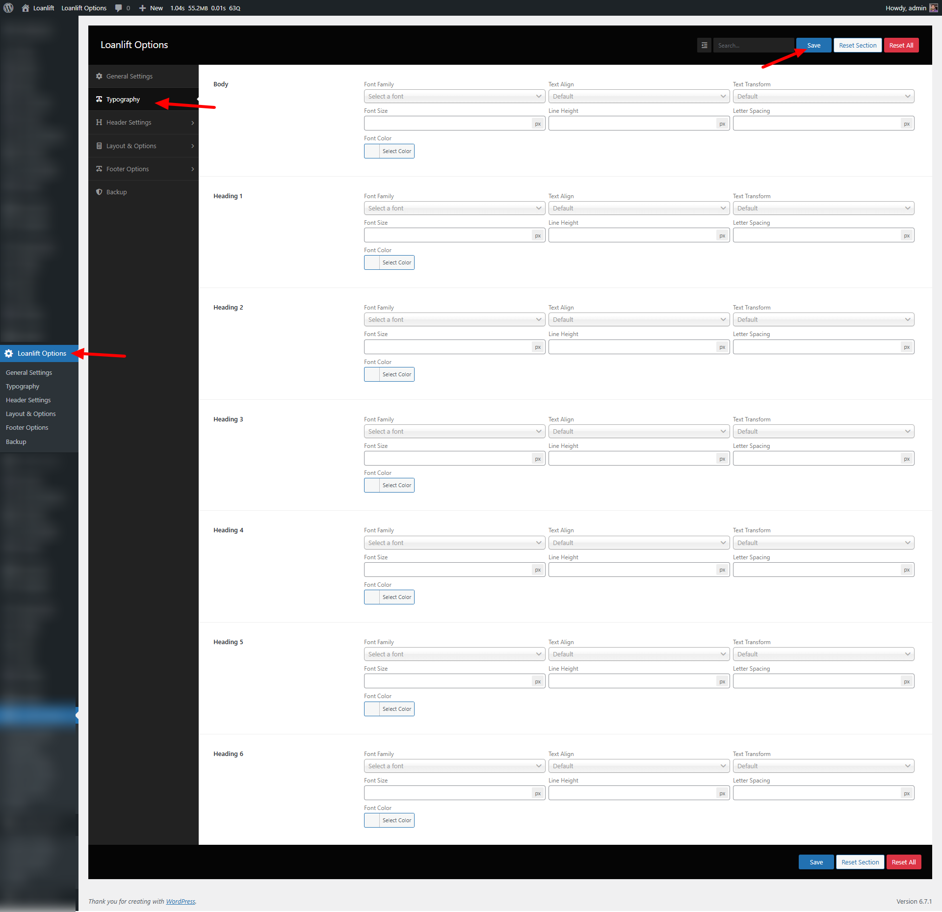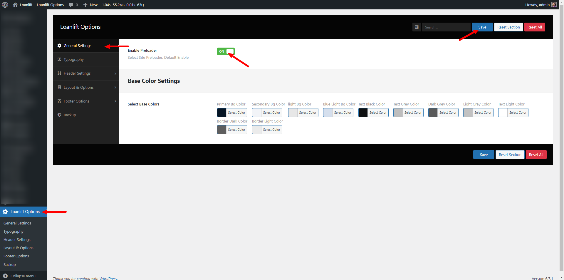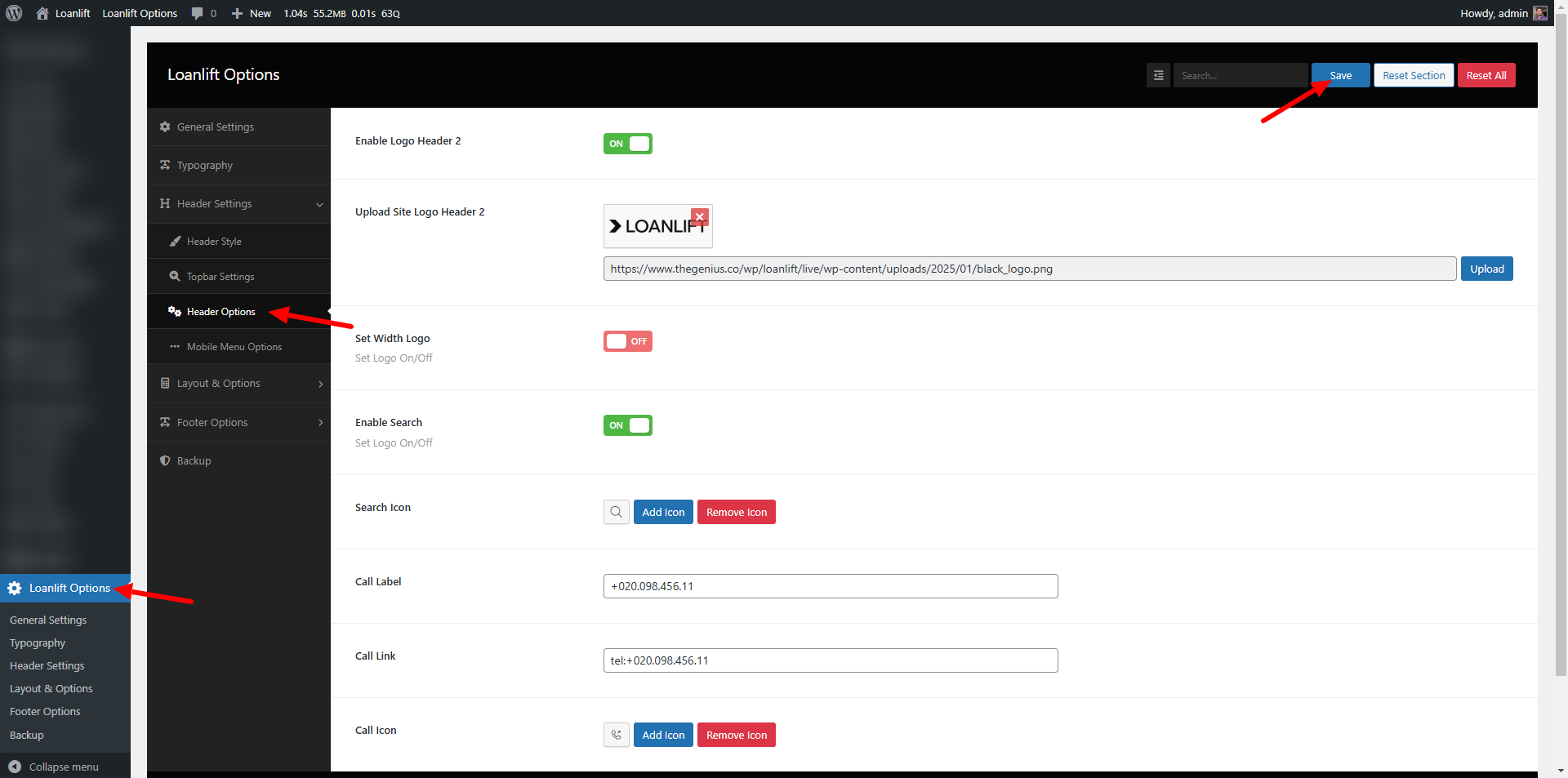 wp-admin >> loanlift Options >> Header Settings >> Header Options