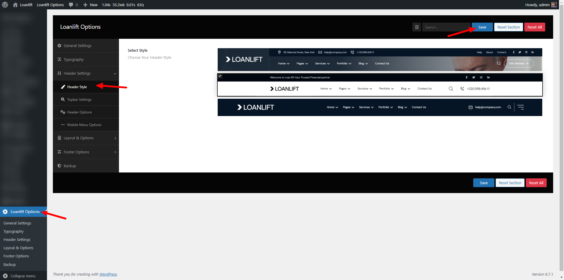 wp-admin >> loanlift Options >> Header Settings >> Header Style