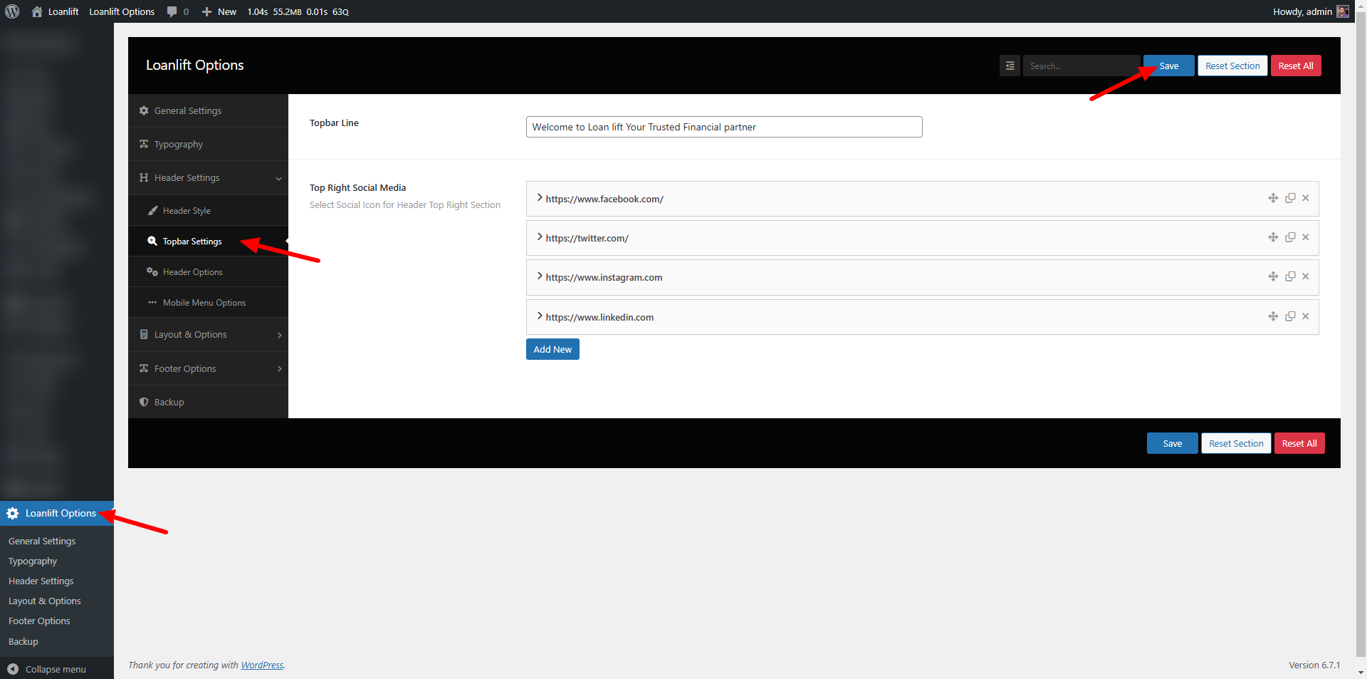 wp-admin >> loanlift Options >> Header Settings >> Topbar Settings