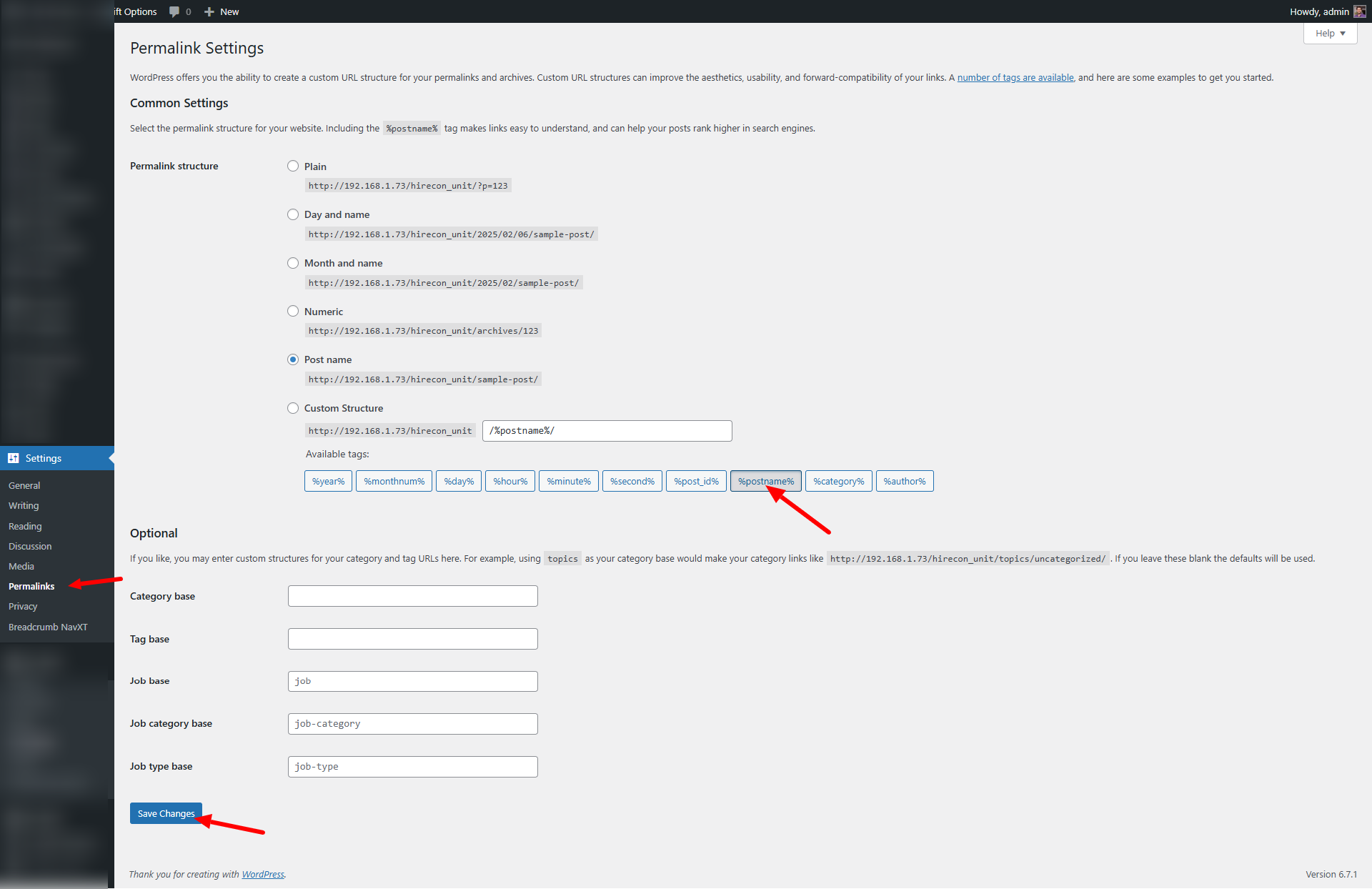 Set Permalink. WP-admin >> Settings >> Permalinks