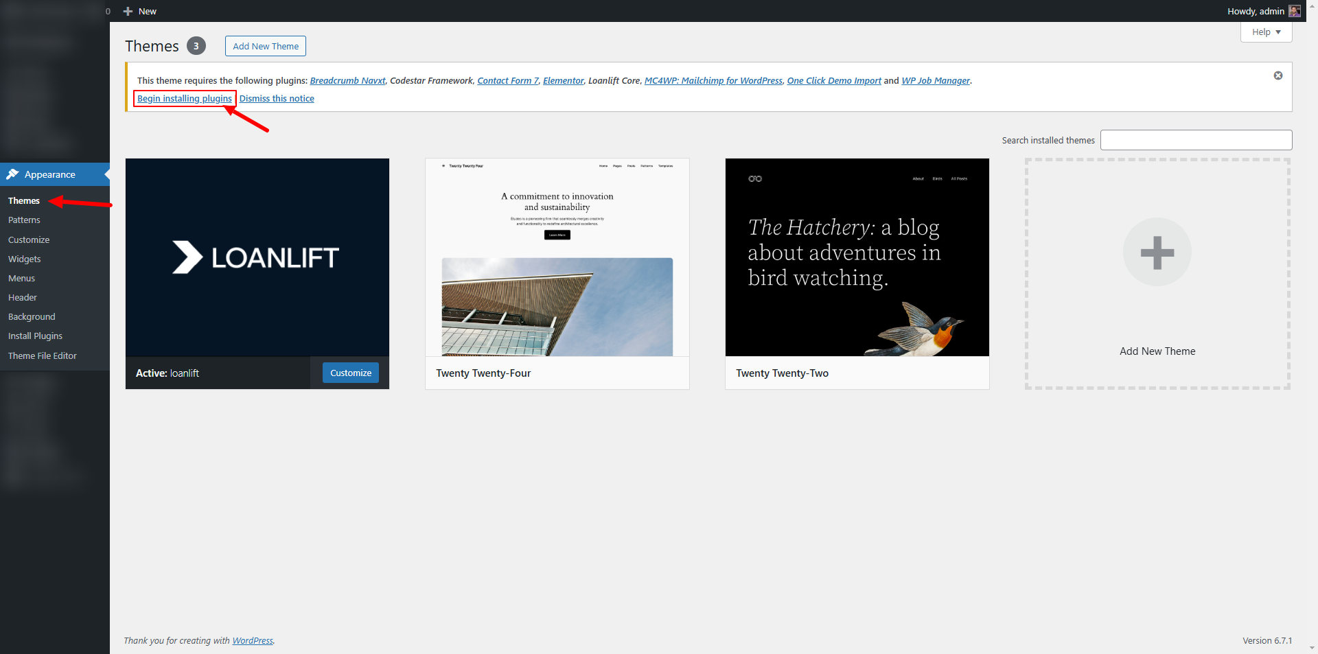 Once you've downloaded the installation file on ThemeForest, extract it and locate a file called loanlift.zip. You can install the theme by using one of two installation methods: