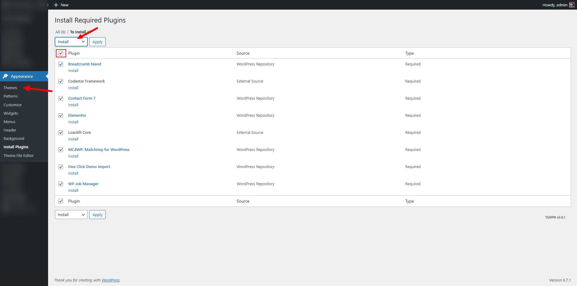 Go to Admin panel > Appearance > Themes > Click On 'Begin installing plugins'
