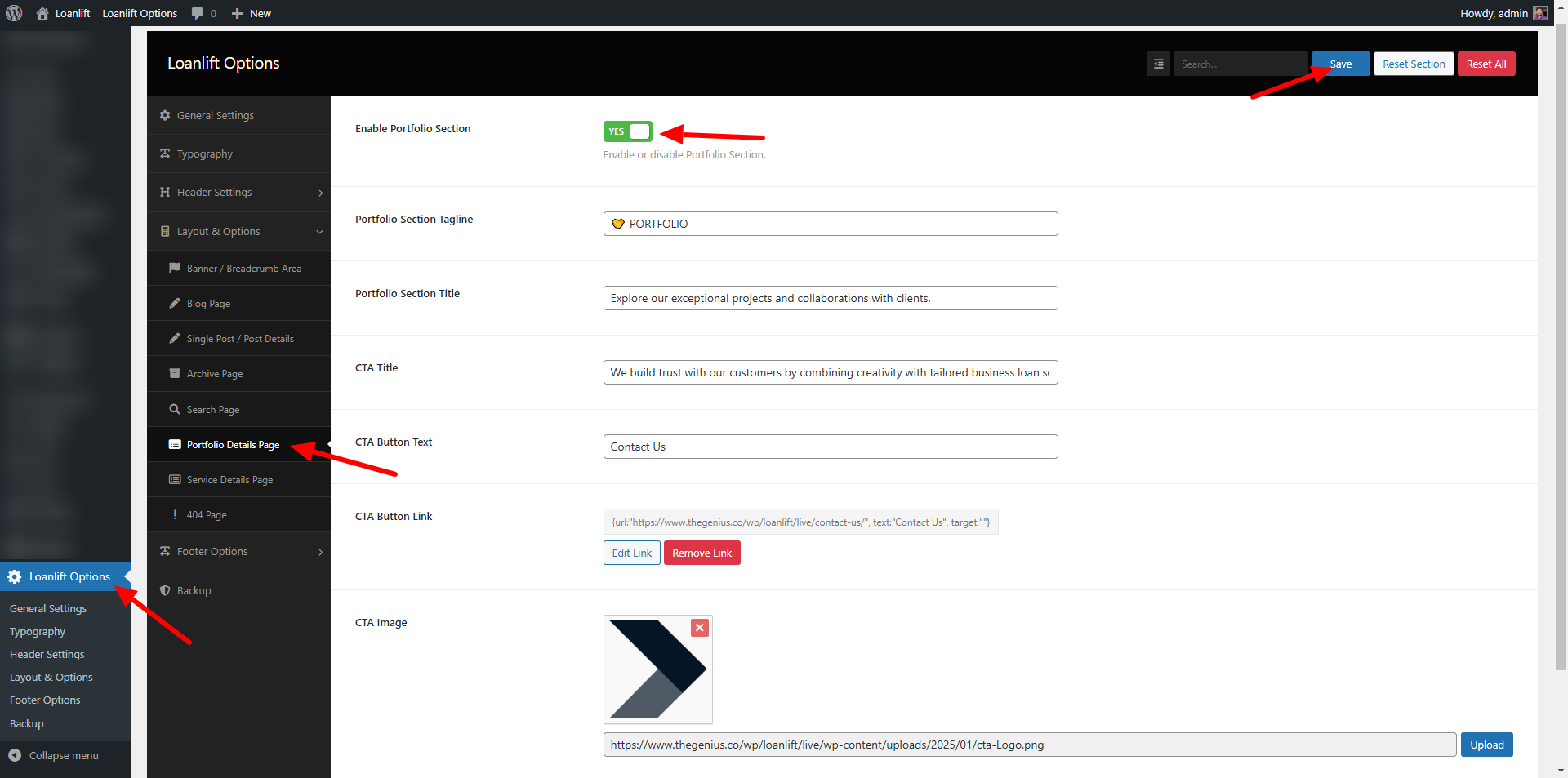 wp-admin >> loanlift Options >> Layout and Options >> Portfolio Details Page