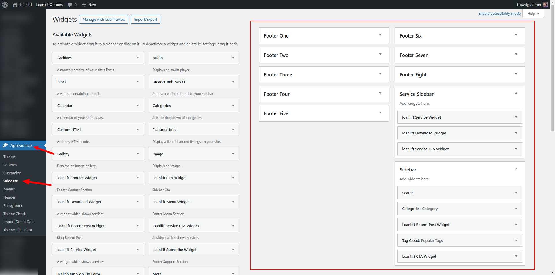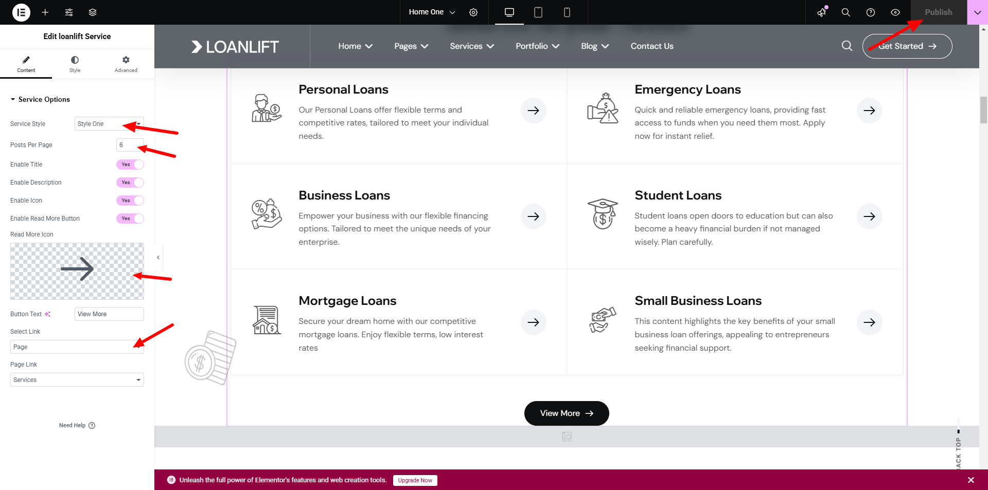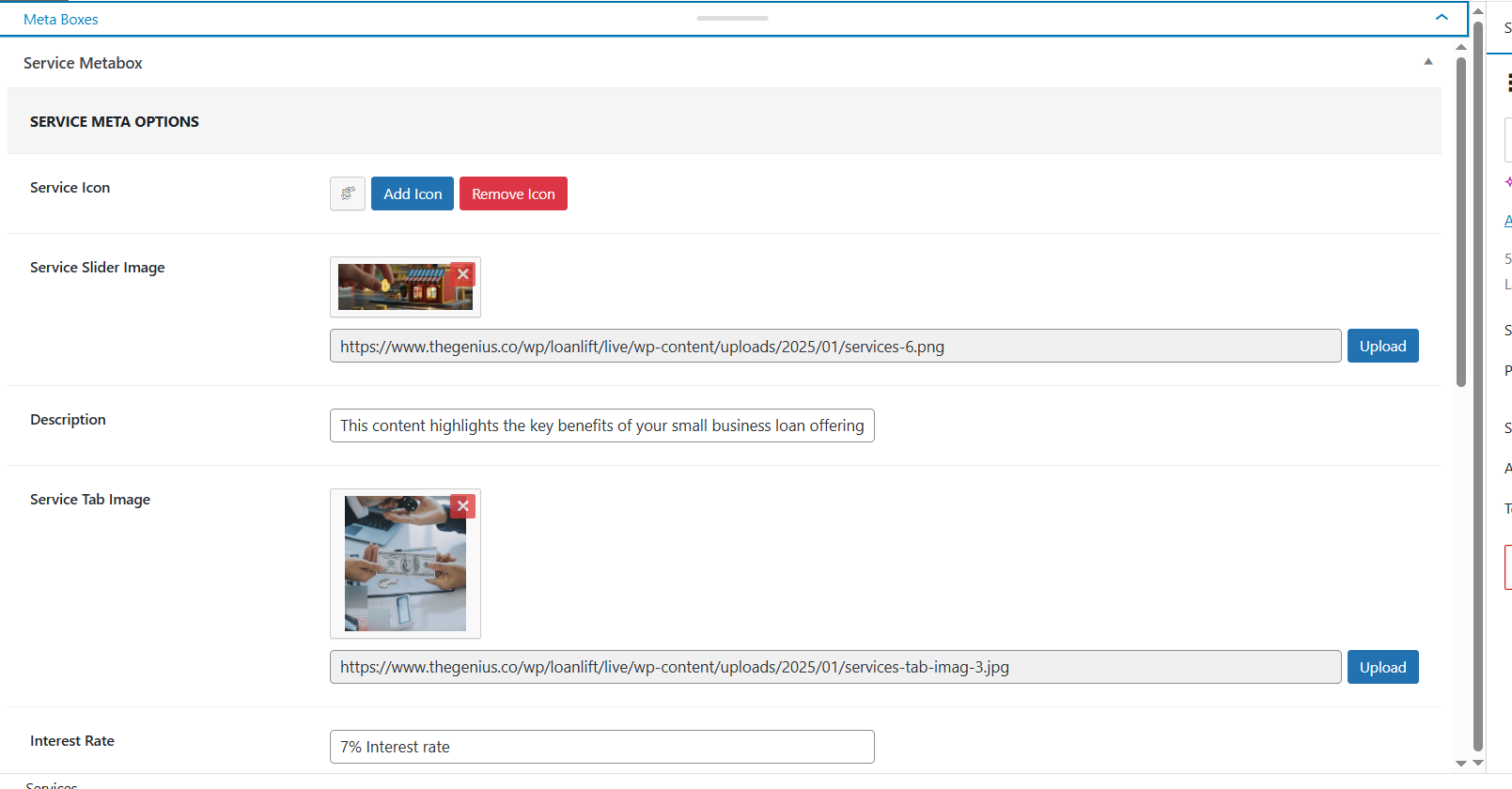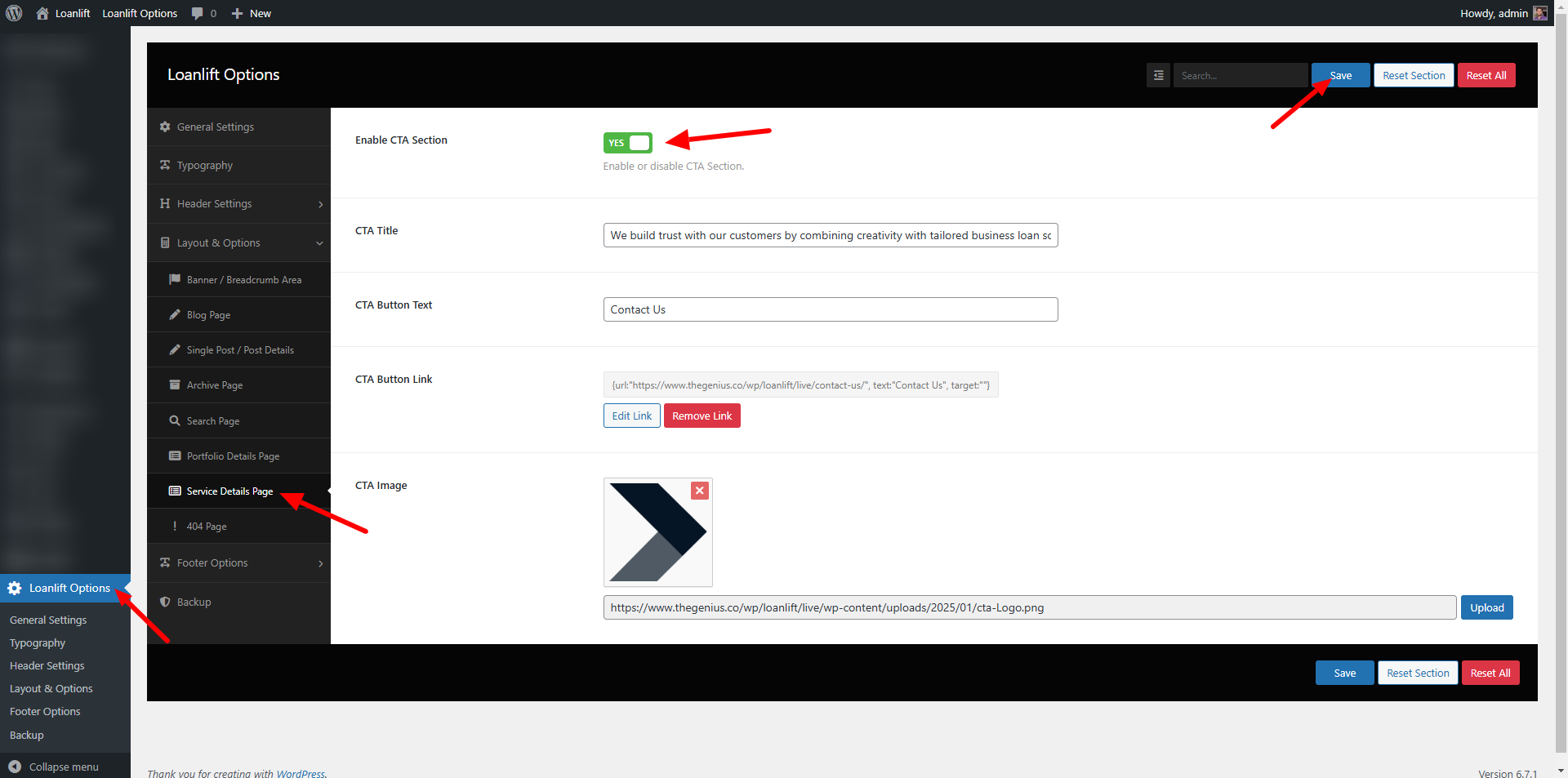 wp-admin >> loanlift Options >> Layout and Options >> Service Details Page