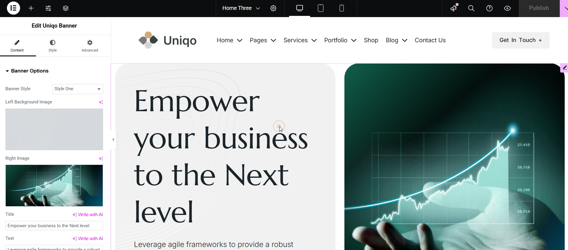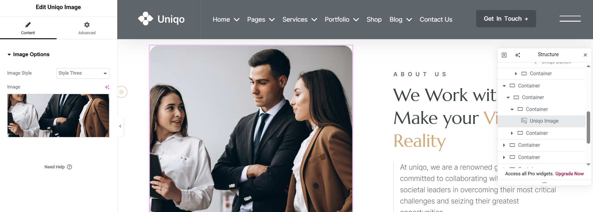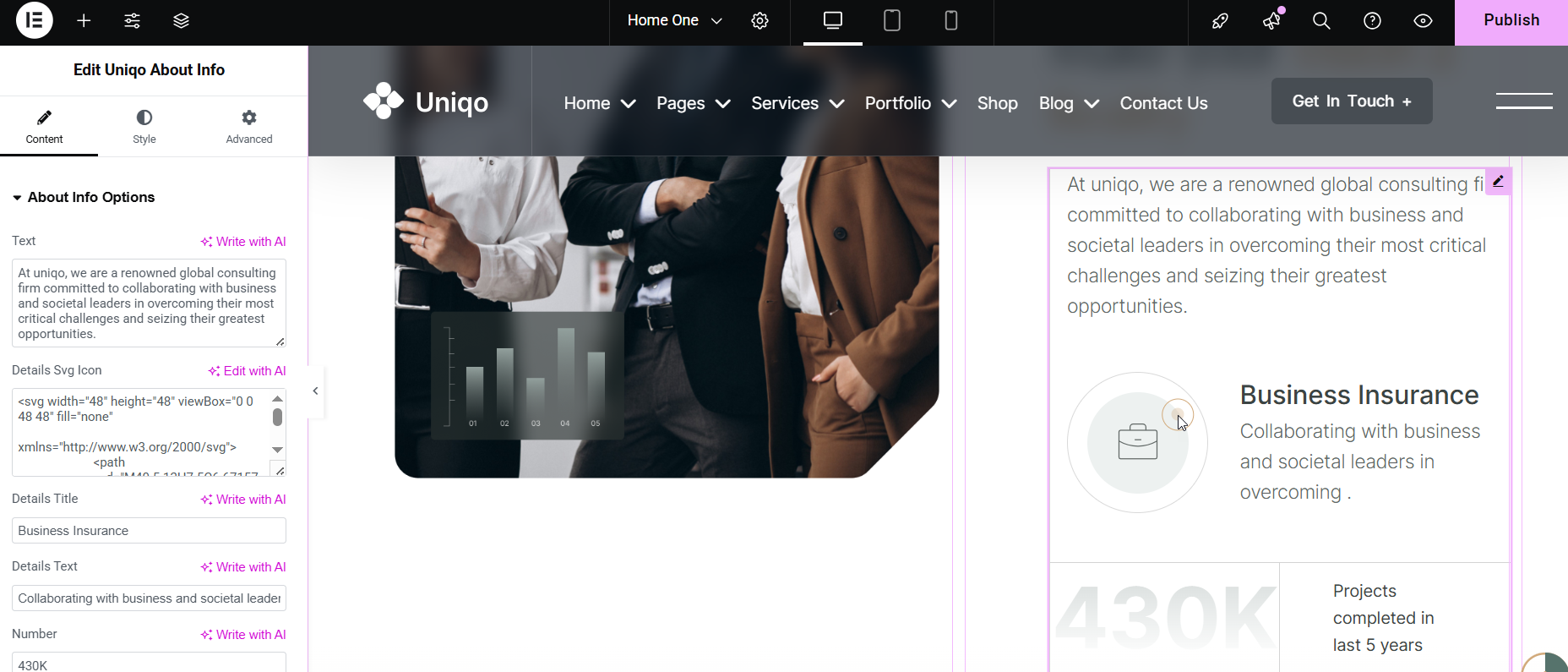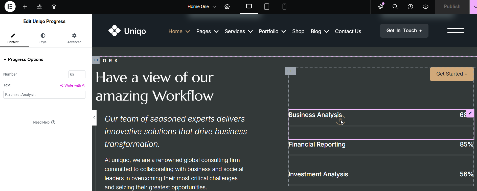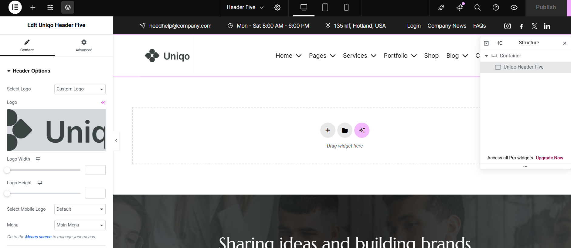 Uniqo Header Elementor