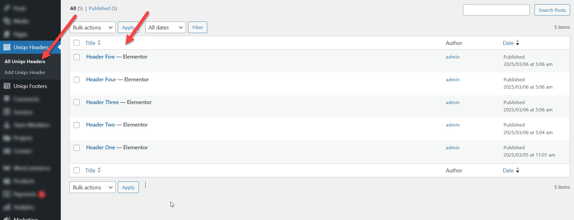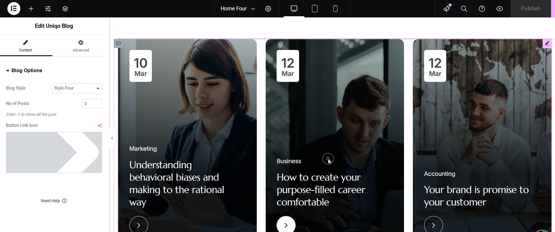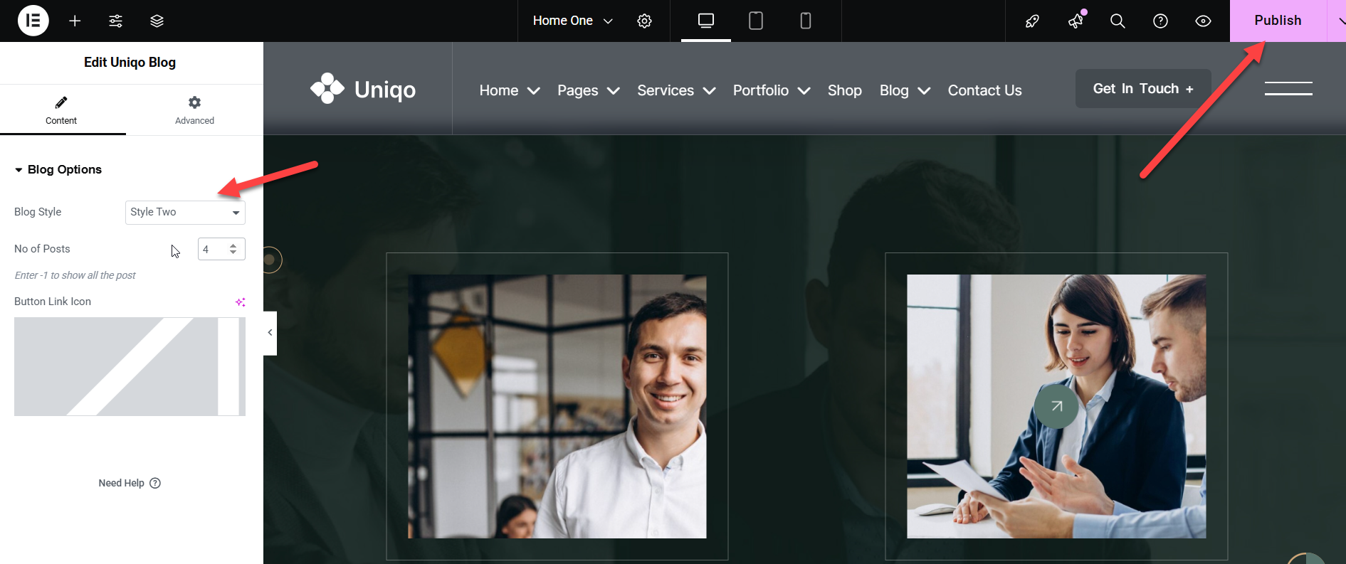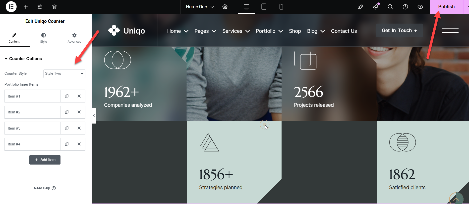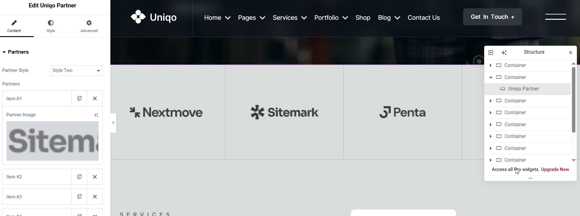 Uniqo Header Elementor