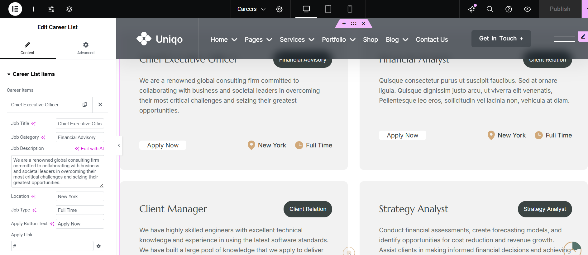 Uniqo Career List