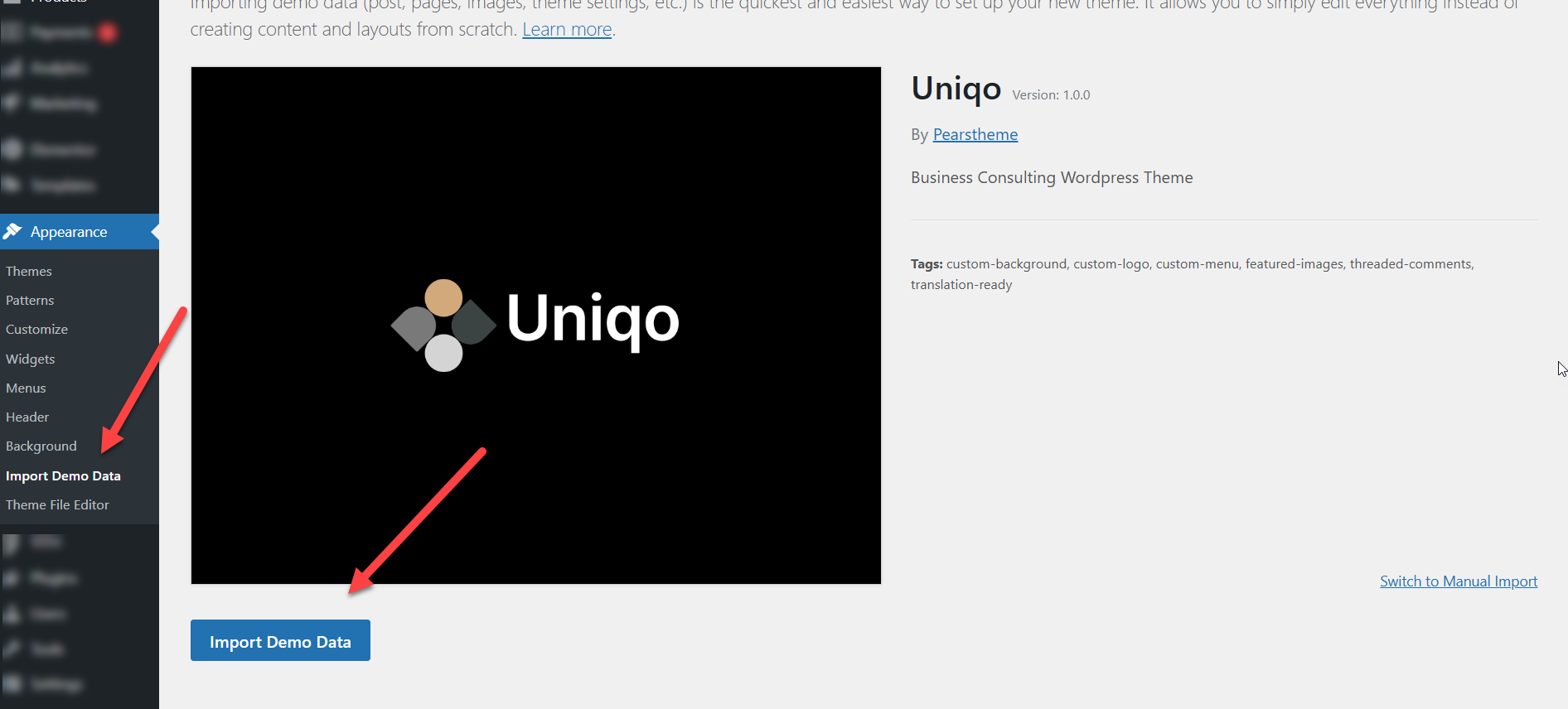 Theme Demo Content Import