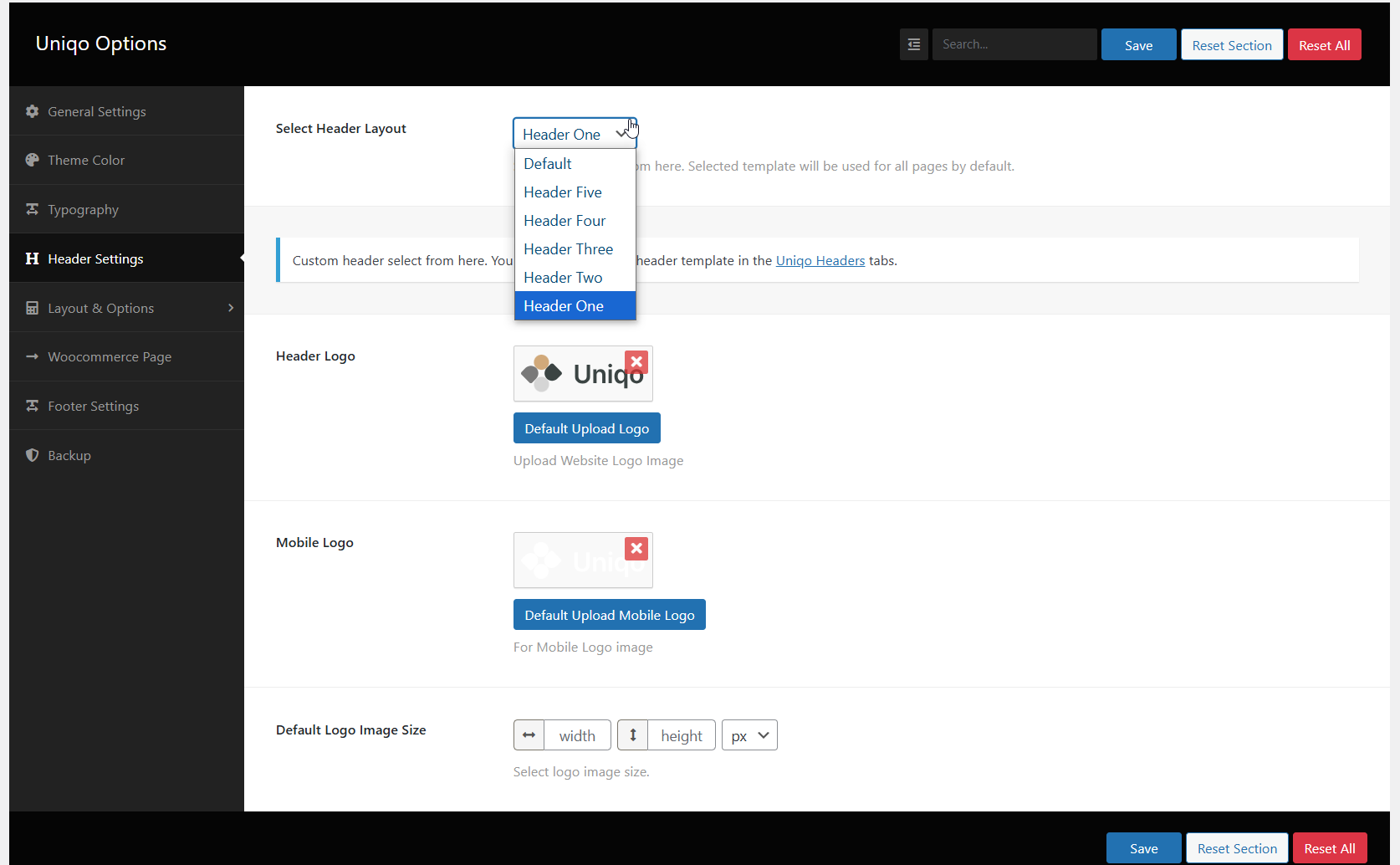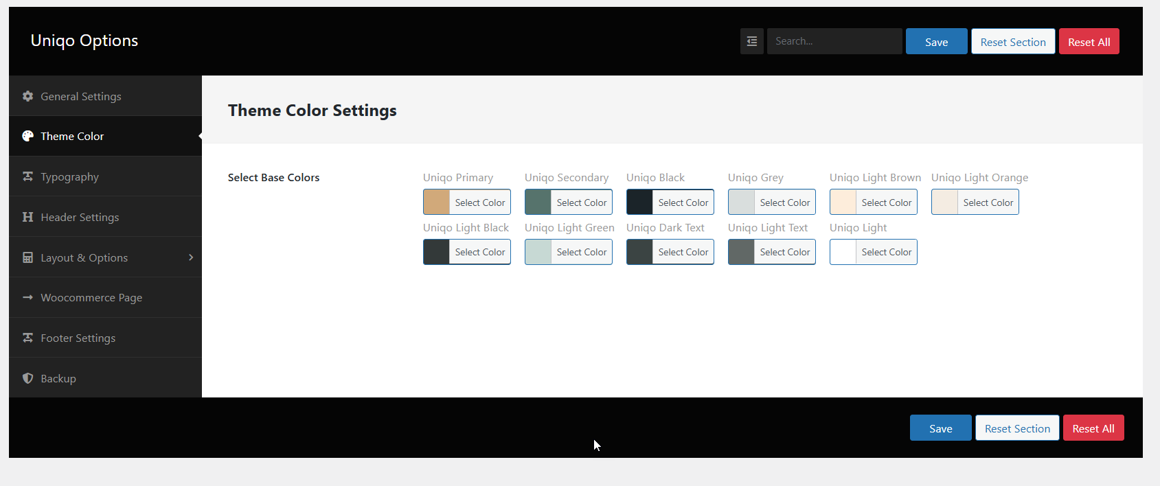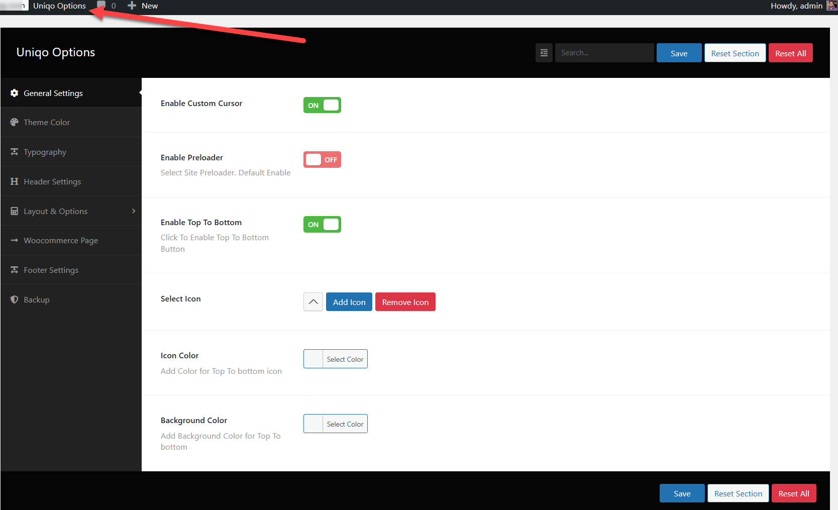 Theme Options Settings (Uniqo Options)