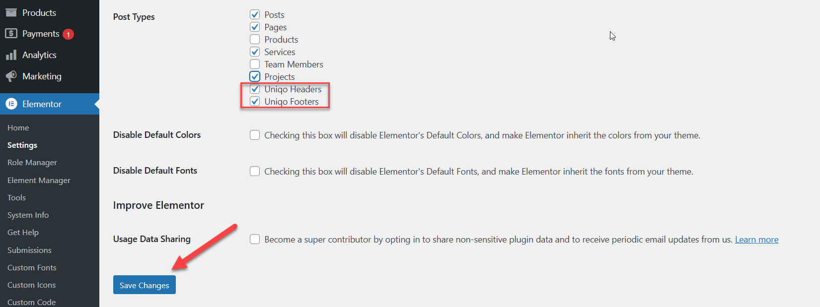 wp-admin >> Elementor >> Settings >> Post Types