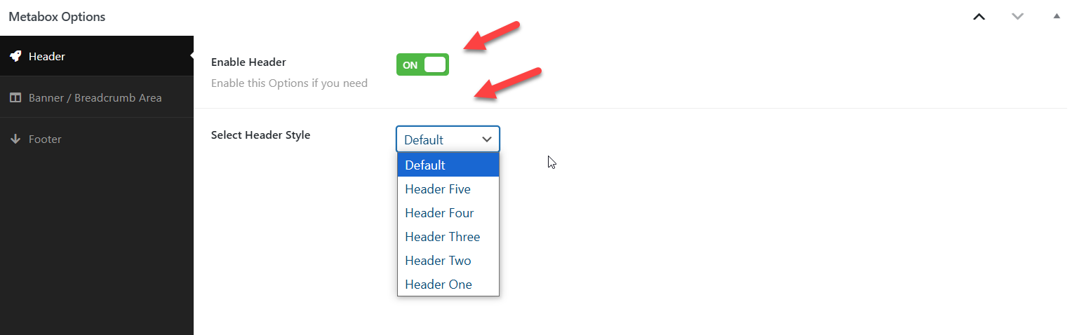 If you Want to change header style for particular page , enable it and choose style. Otherwise it will be default header as other pages.