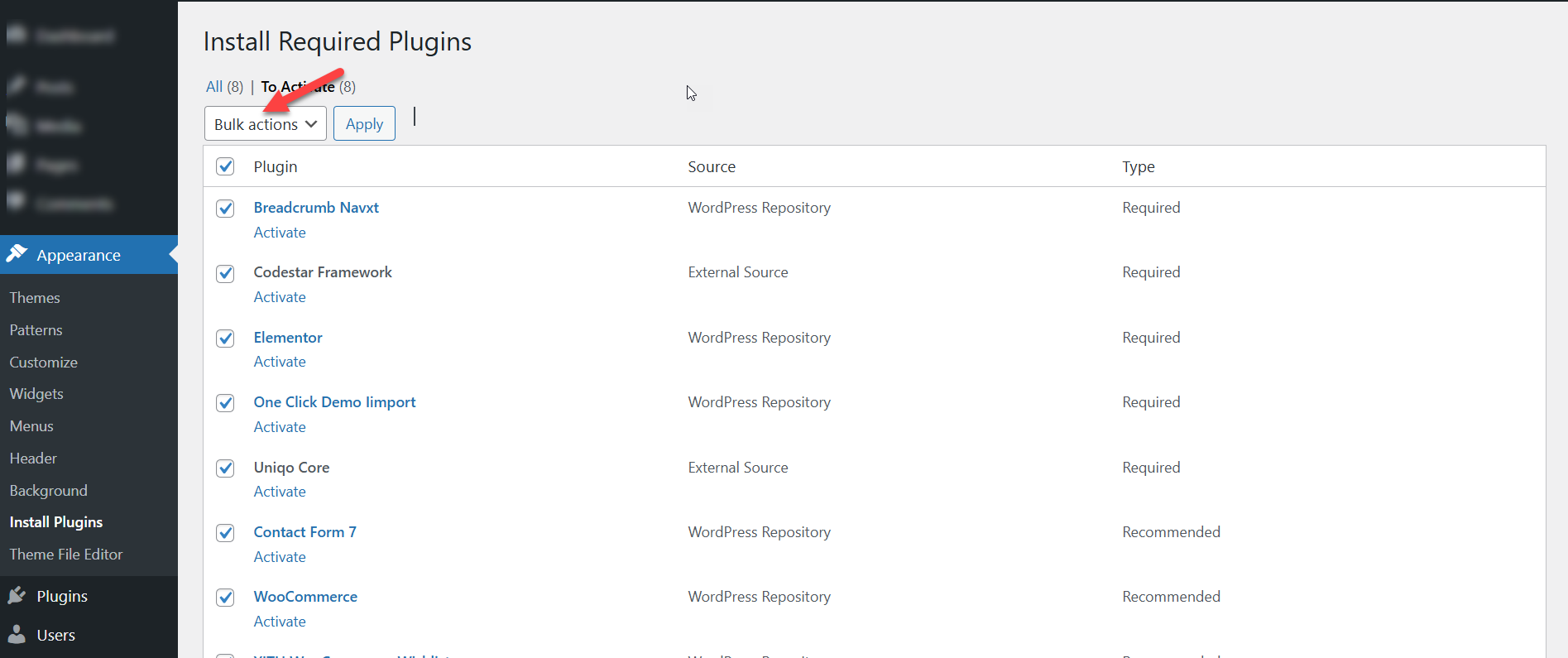 After clicking "Begin Installing Plugins," install all the plugins.