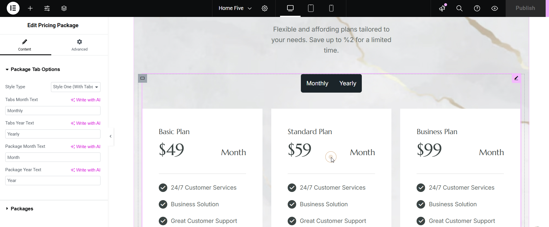 Add number,icon and text to the Pricing.
