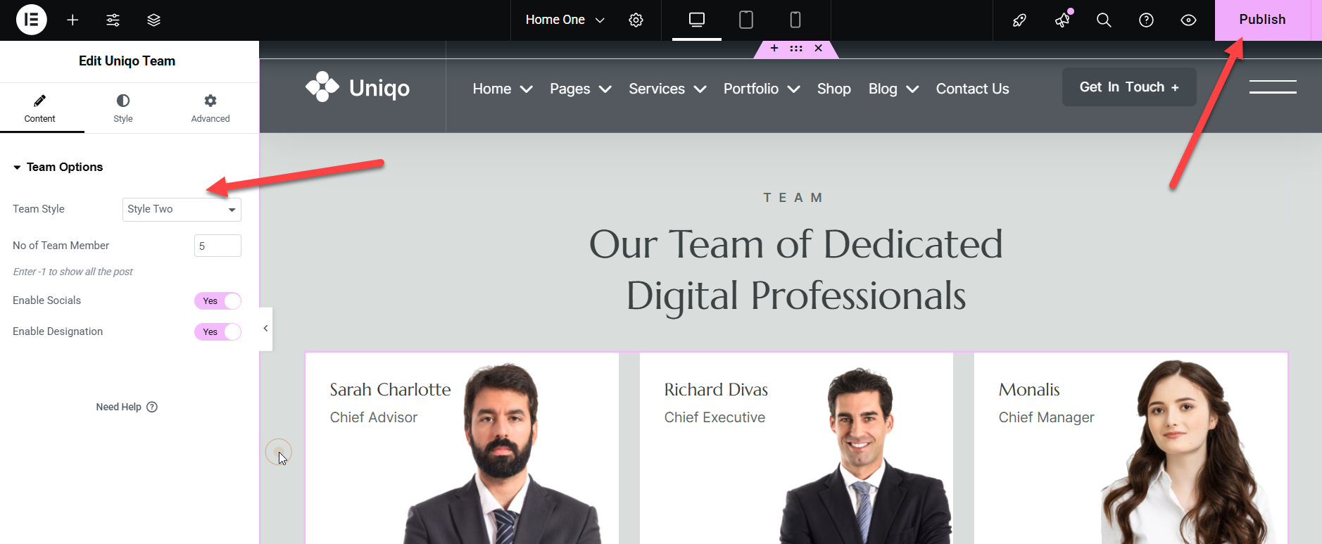 wp-admin >> Uniqo Options >> Header Settings >> Header Style