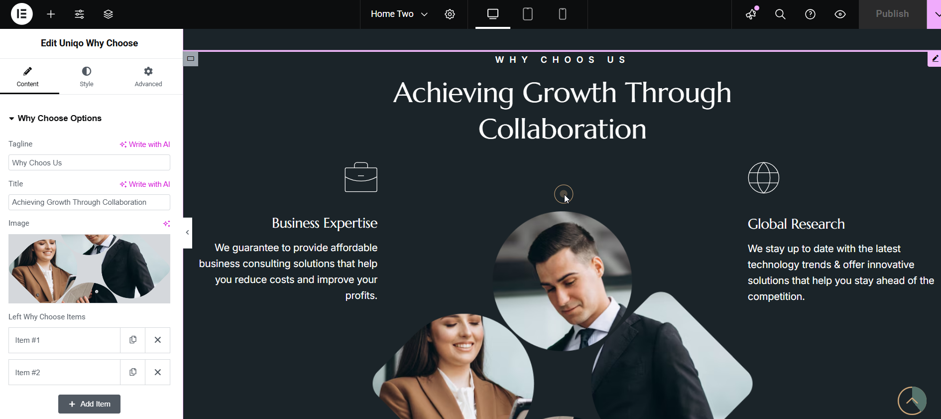 Custom General Uniqo Elementor