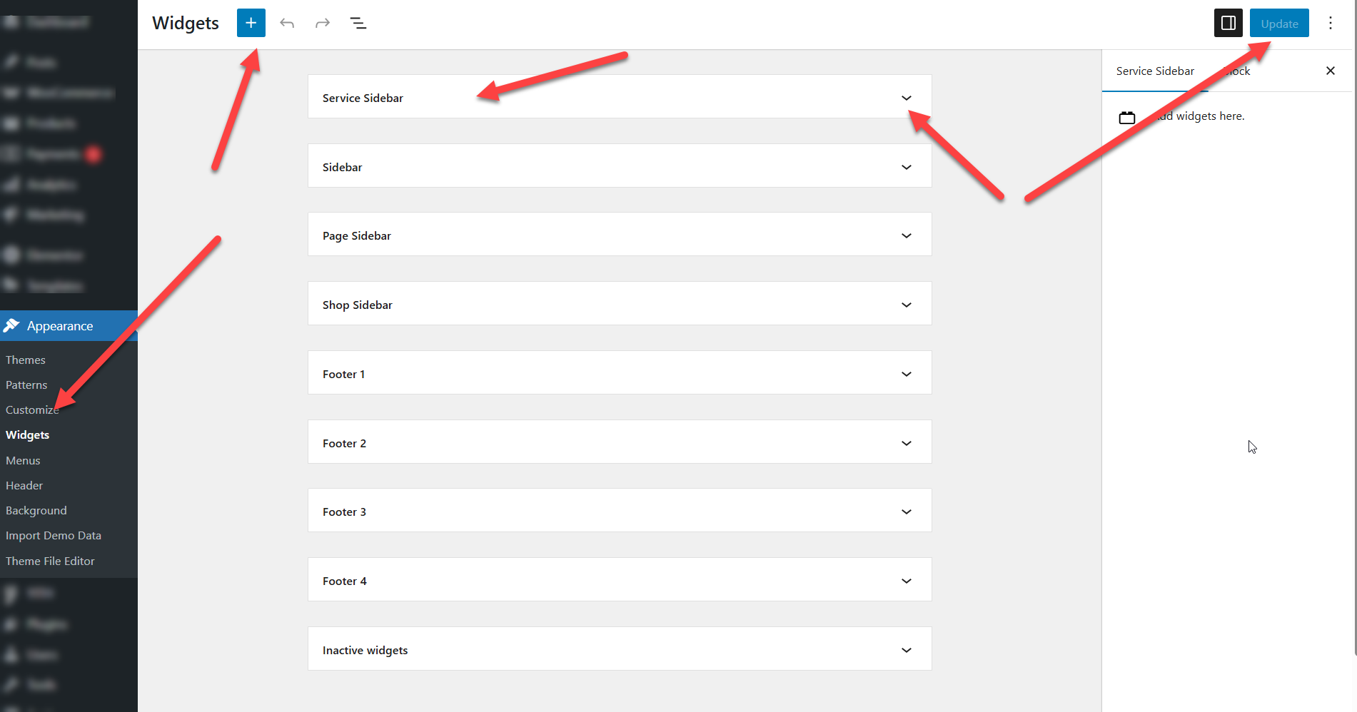 wp-admin >> Appearance >> Widget